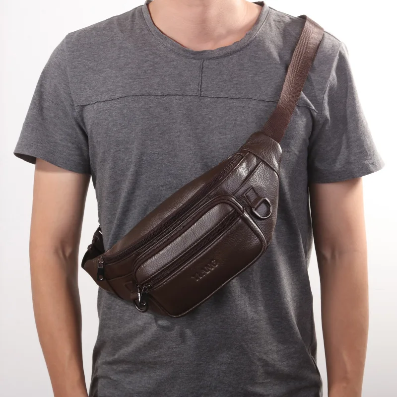 Натуральная кожа, забавная поясная сумка-слинг для мужчин, модная повседневная нагрудная сумка на плечо из натуральной кожи