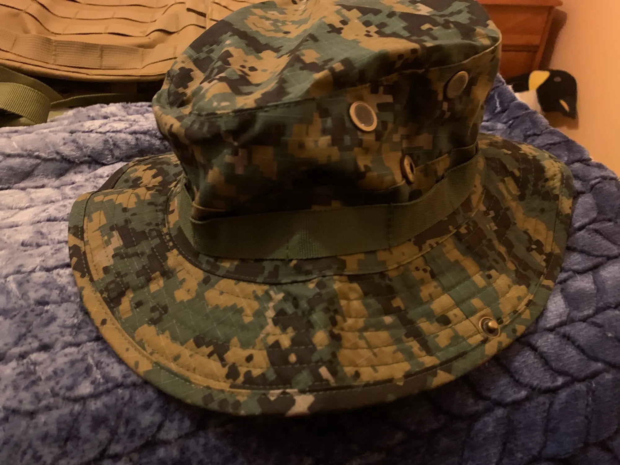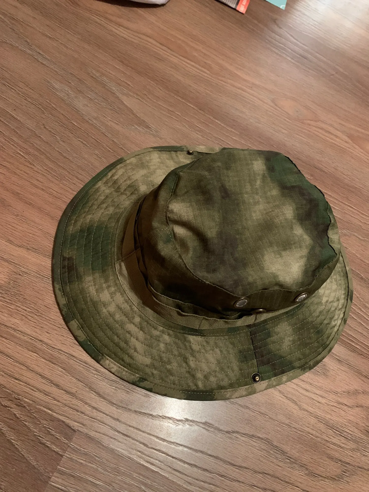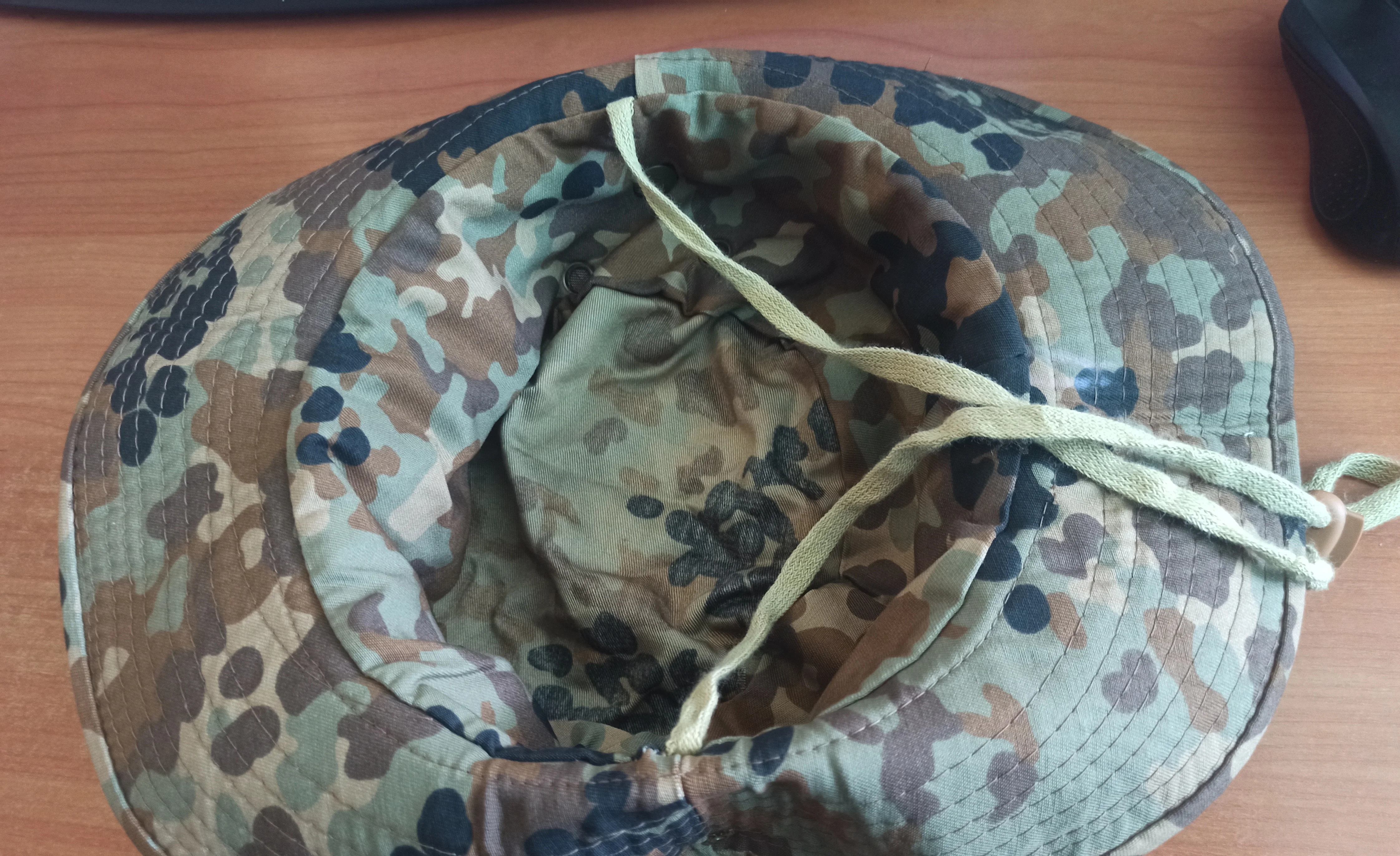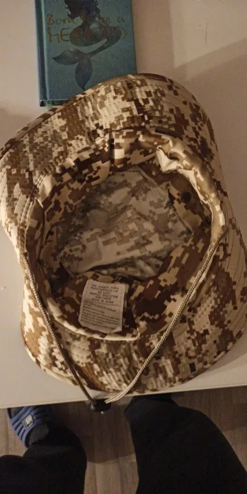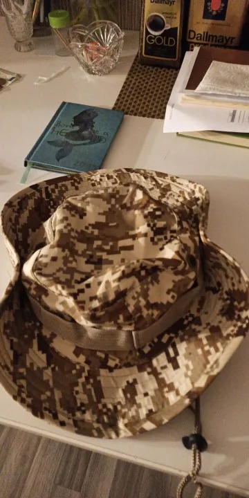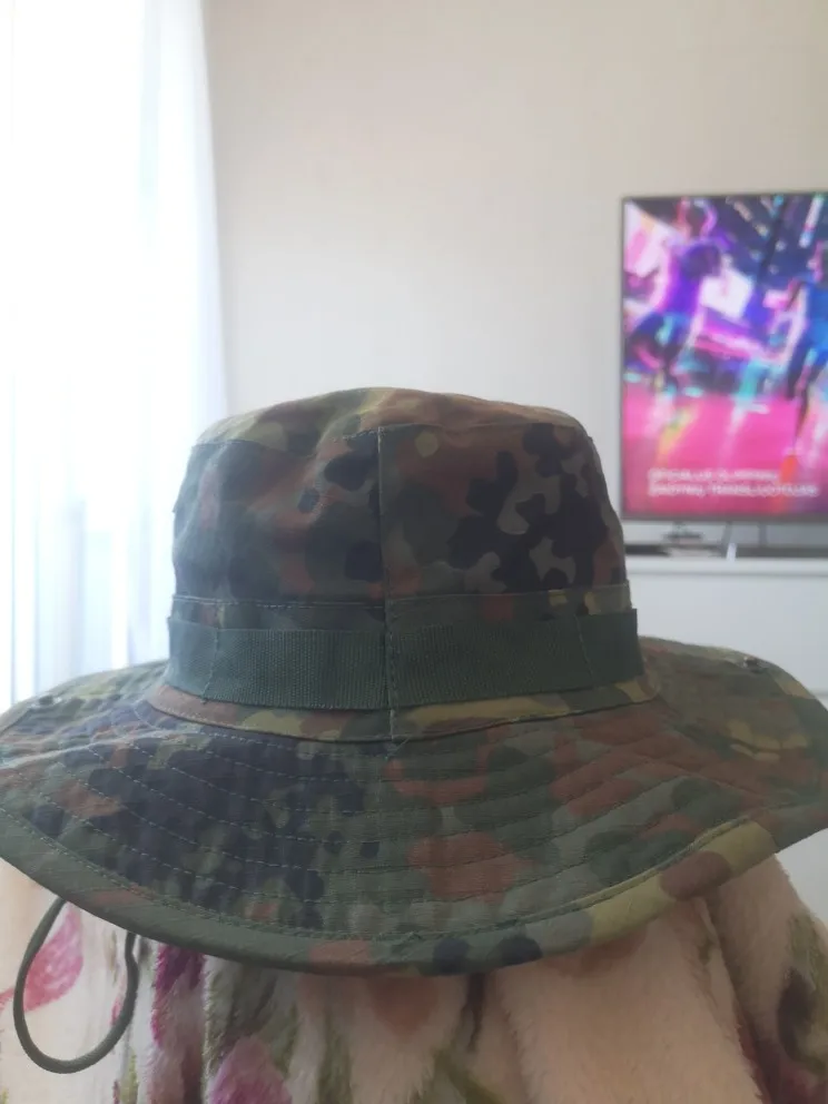 Хороший материал и хорошая отделка. Крыло шляпы остается довольно жестким и все же легко складывается в небольшом пространстве. После распаковки он возвращается в нормальную форму шляпы, не будучи слишком деформированным или морщинистым. Схема камуфляжа очень хорошая. Overall I Am Very satisfied with the purchase.