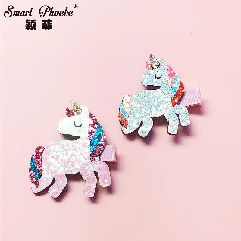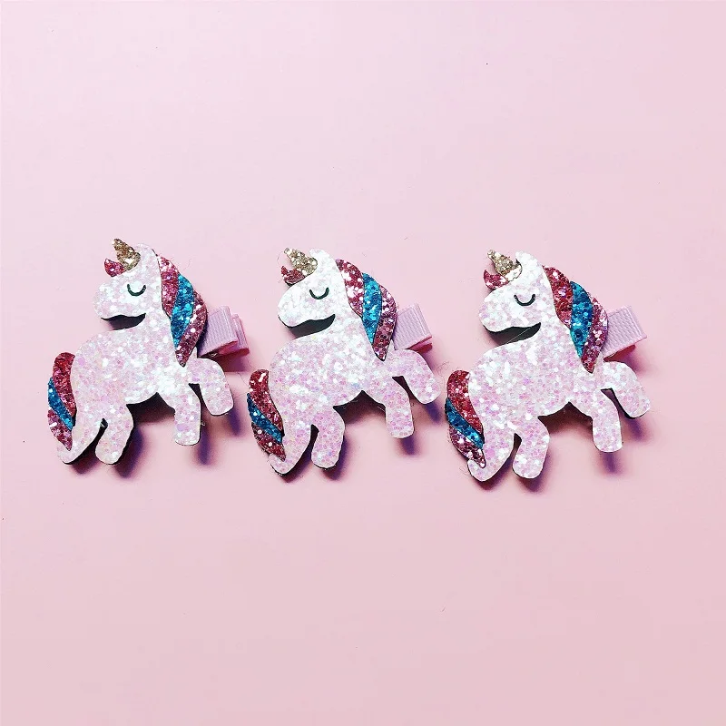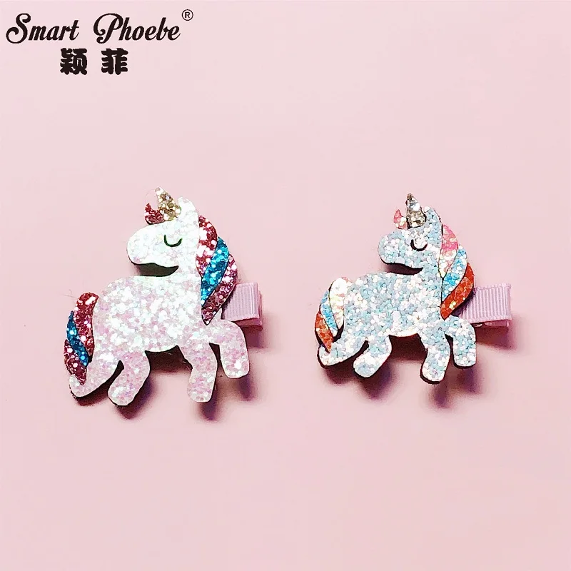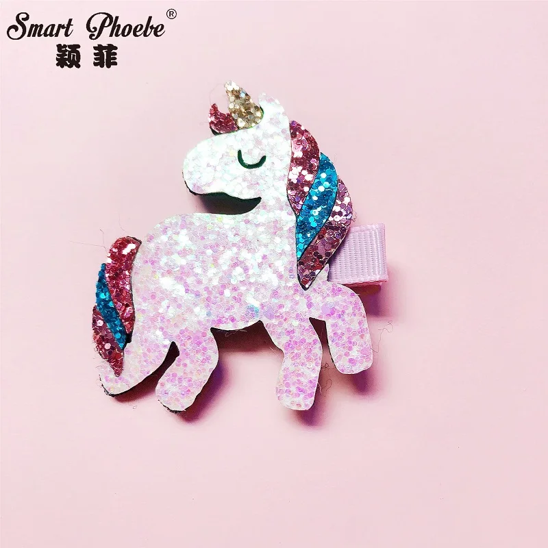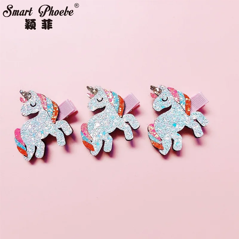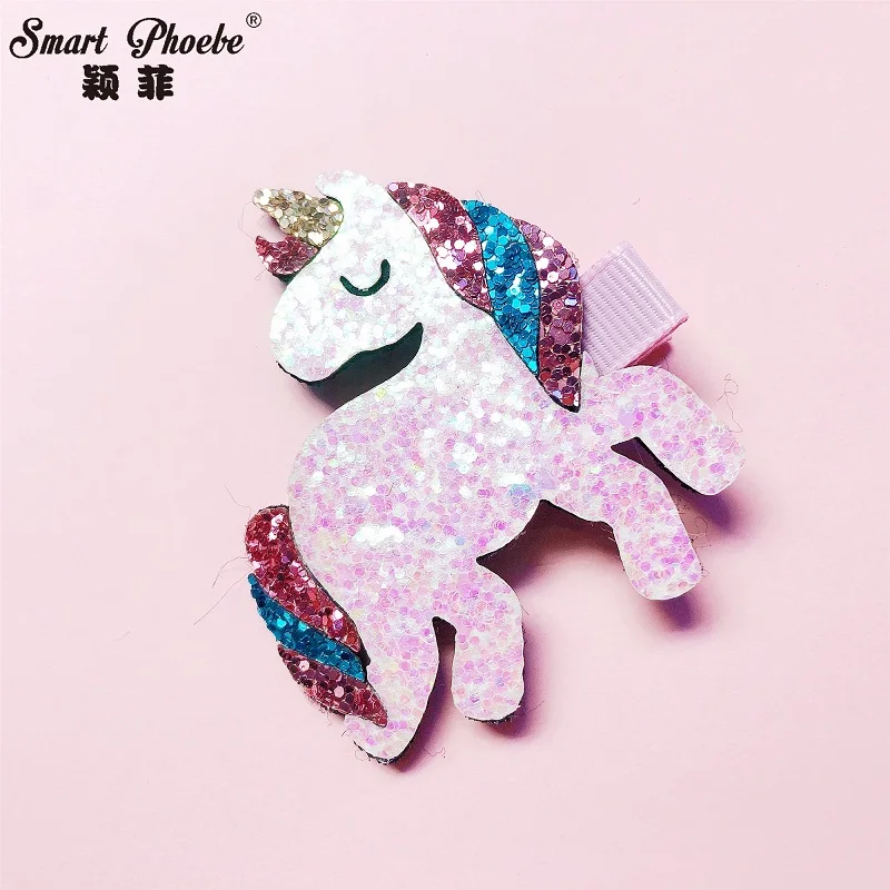 Изысканные 10 шт. модные милые блестящие заколки с единорогом, цельные войлочные заколки для волос с животными, заколки для волос принцессы, аксессуары для волос