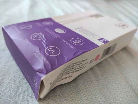 2 недели до Киева, коробка помялась, но ничего не пострадало внутри. Насадки упакованы в вакуумные пакеты и на каждой колпачок с перфорацией значка soocas (мелочь, а приятно). Щетина плотная, особо не торчит нигде, на ощупь средней жёсткости - то, что надо.