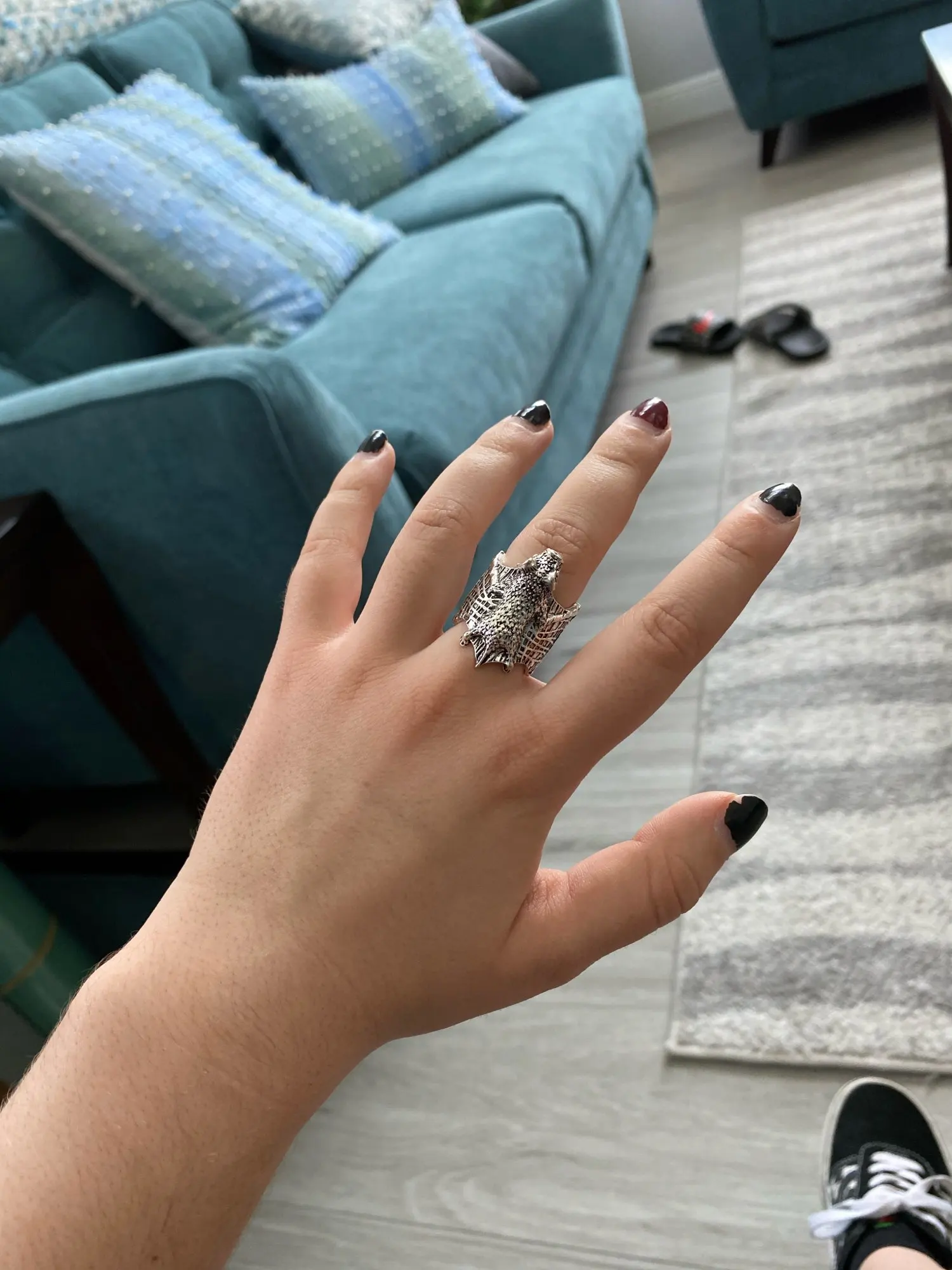 Страна: CA Metal Color: matte black Ring Size: Resizable Доставка: Cainiao Super Economy Global 17.03.2021