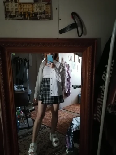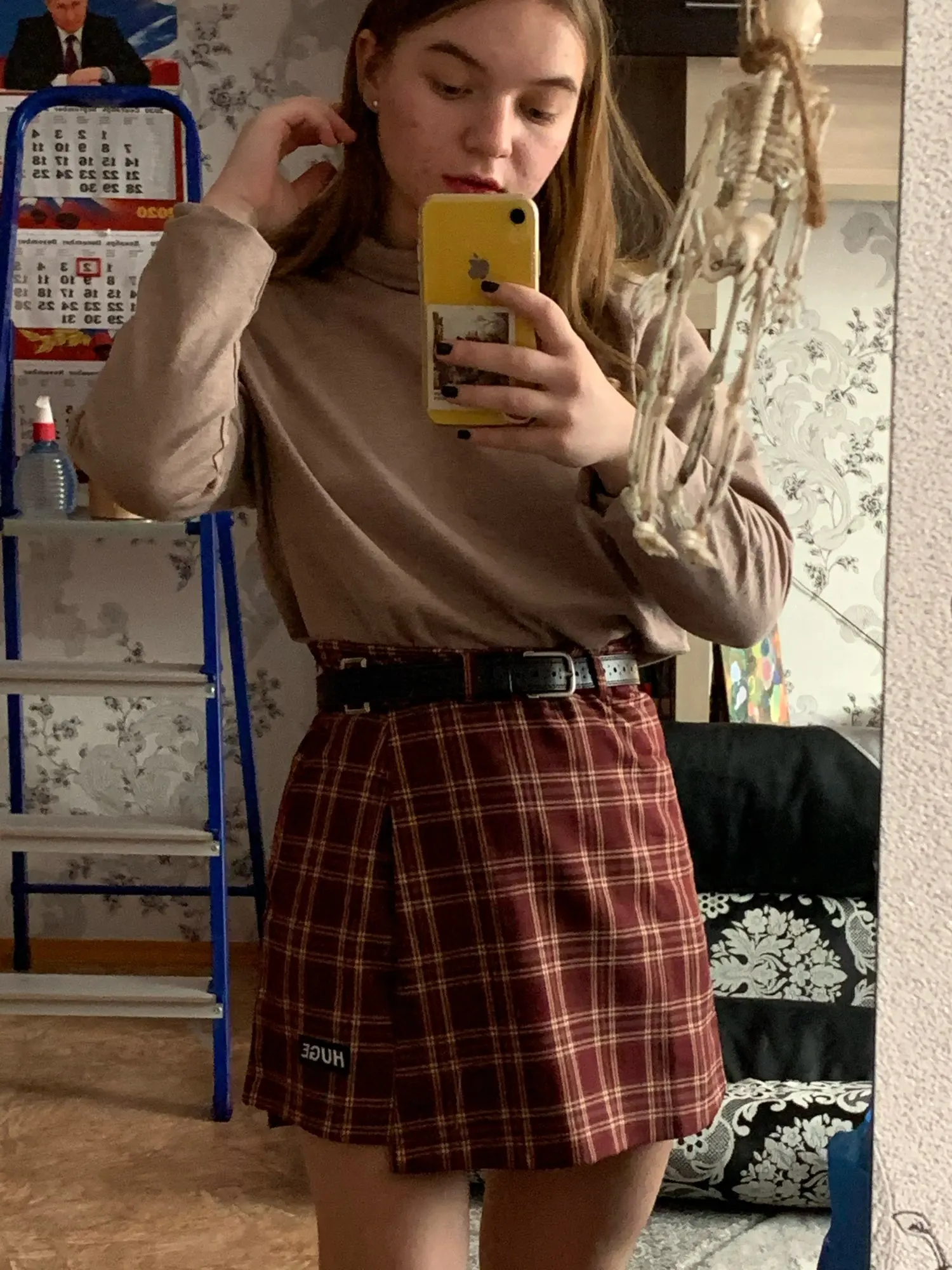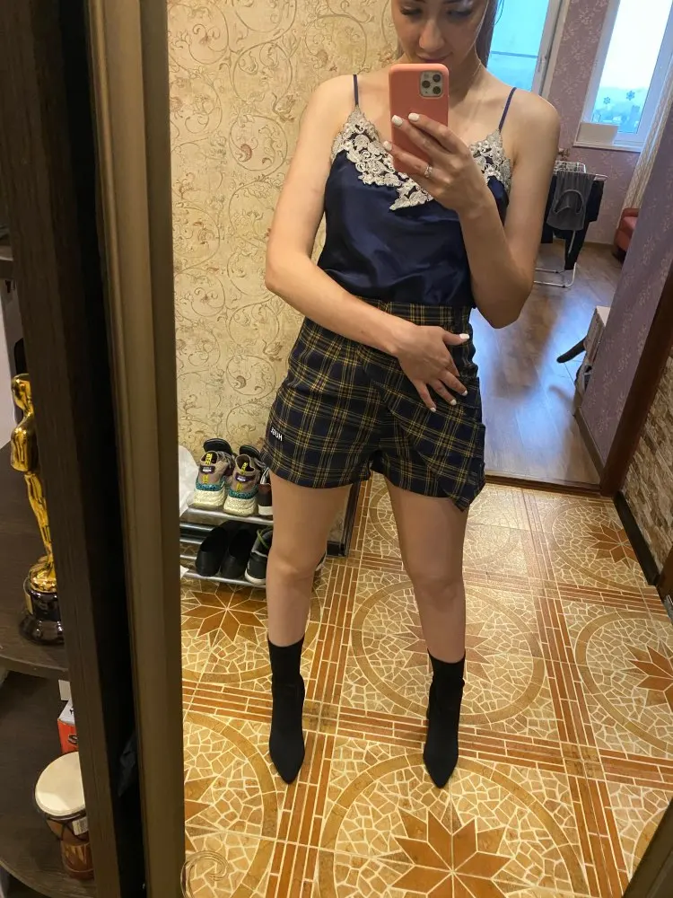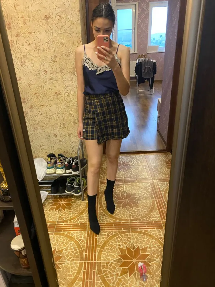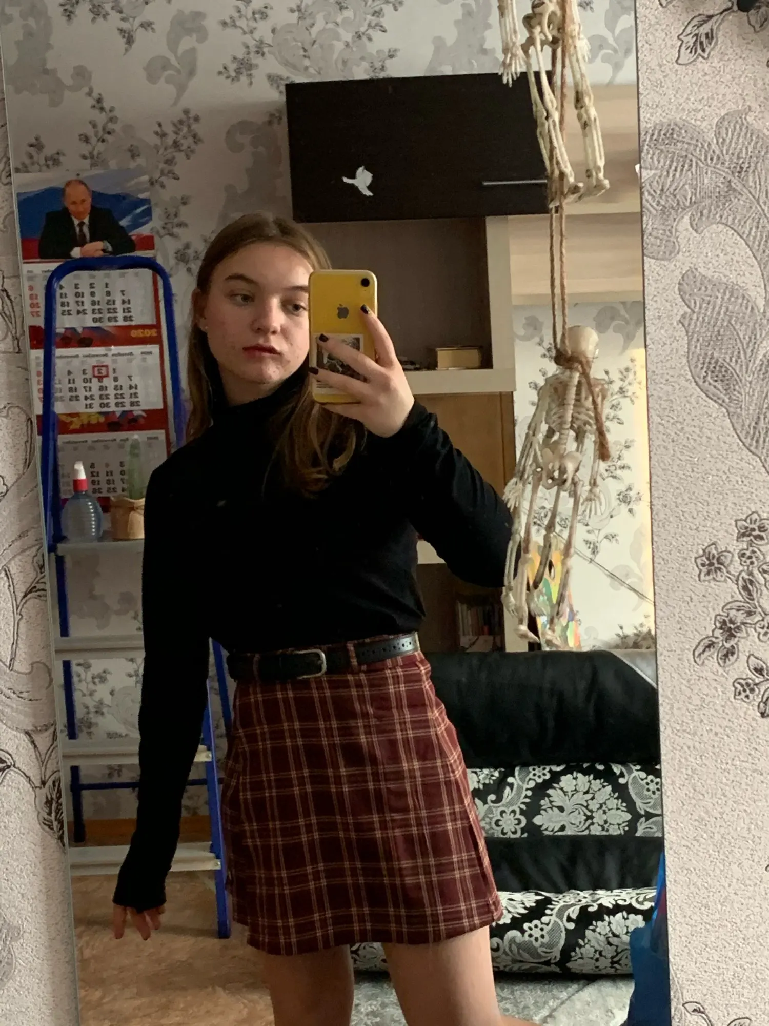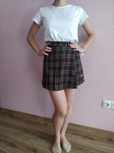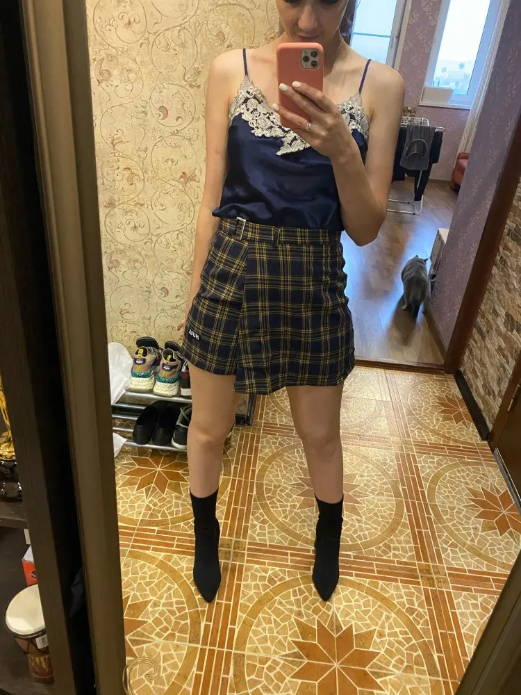 Мой рост 170, об 94, от 64. Юбочка конечно приколдесная но если вы комплексуете из-за своих ляшек (не комплексуйте, вы прекрасны!!!) то немножко некомфортно ходить очень коротенькая а вообще странно я что думала ног не будет видно ну я не очень умная не будьте как я готовьтесь к егэ