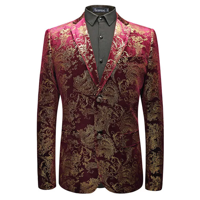 Бархатный серебристый блейзер для мужчин, цветочный пиджак с пейсли, винно-красный золотой пиджак для сцены, элегантный свадебный Мужской Блейзер размера плюс M-6XL