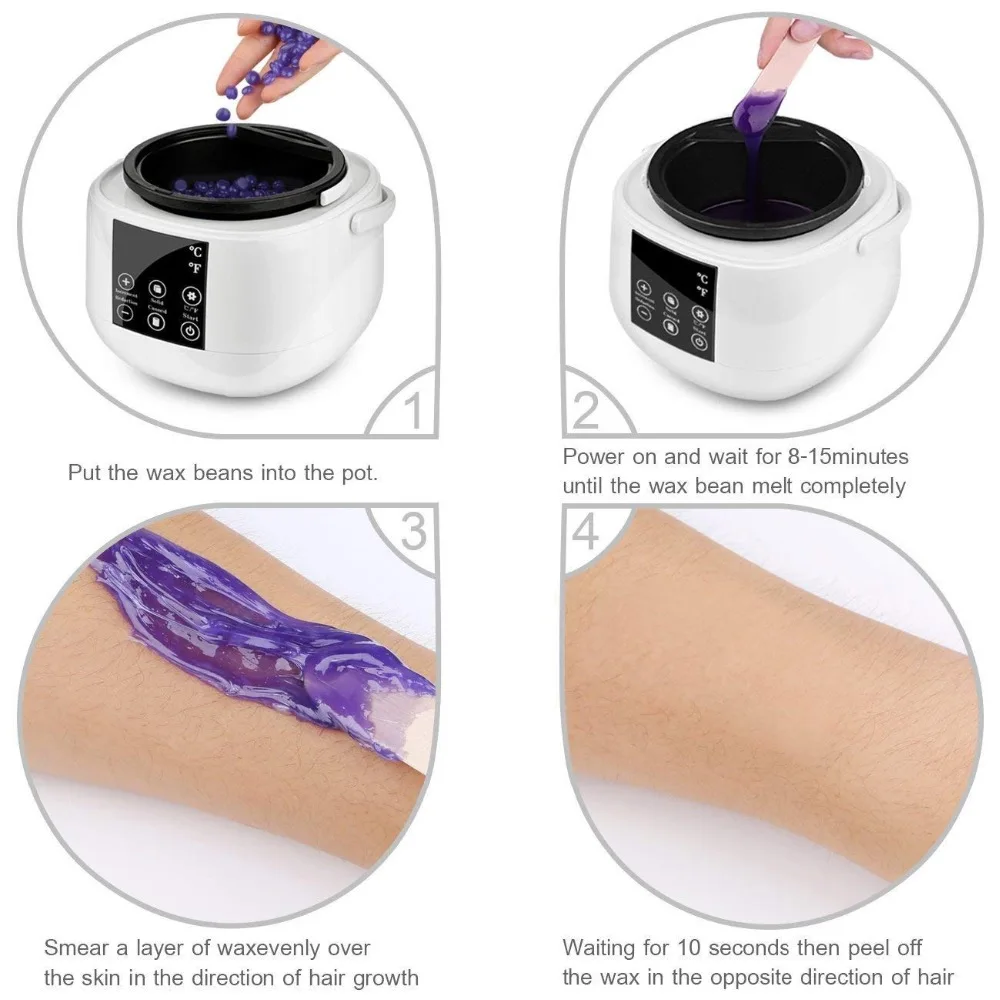 4. Перед нанесением на кожу Проверьте температуру воска, чтобы убедиться, что он не слишком горячий.