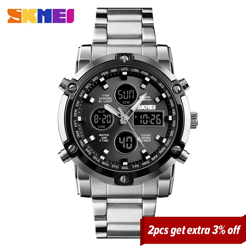 SKMEI Для мужчин кварцевые часы Спорт на открытом воздухе цифровые часы обратного отсчета Нержавеющаясталь ремень Для мужчин наручные часы Relogio Masculino 1389