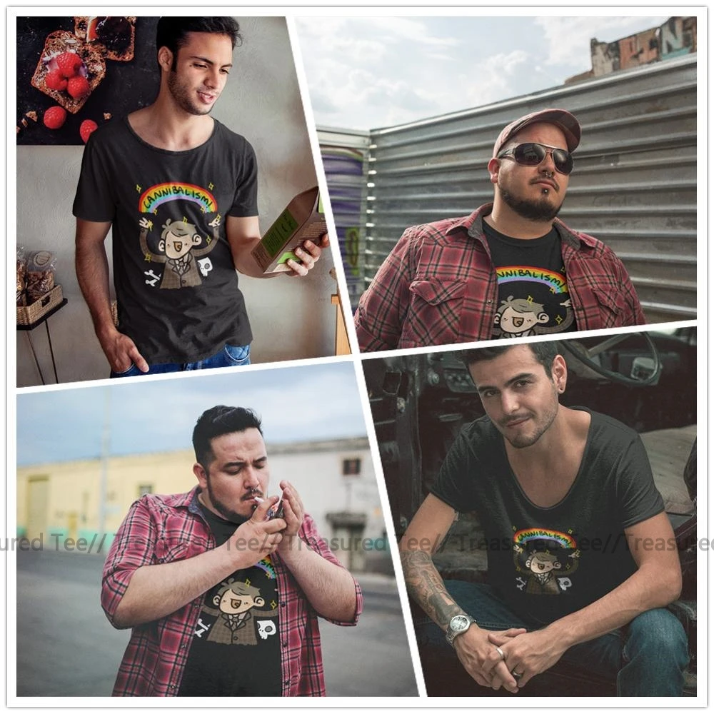 Футболка Hannibal, футболка CANNIBALISM с коротким рукавом, футболка с принтом, базовая Мужская футболка из 100 хлопка, забавная футболка оверсайз