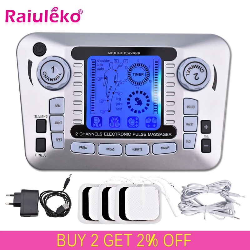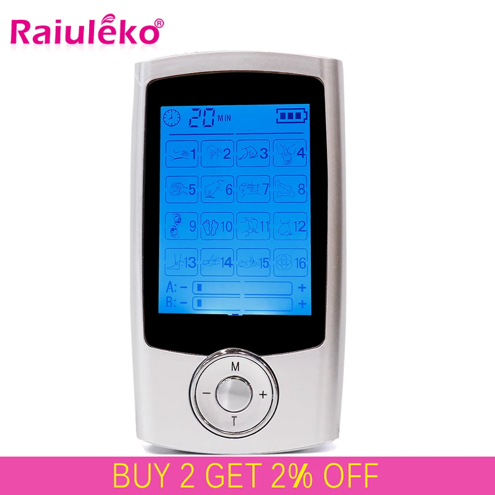 16 режимов двойной выход здравоохранения Массаж тела Электрический EMS стимулятор мышц десятки единиц электронный импульсный массажер для физиотерапии
