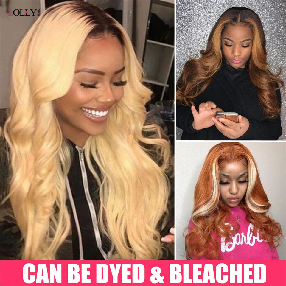 Медовый блонд, волнистый парик, прозрачный кружевной передний парик из человеческих волос, бразильский T1B/613, средняя часть, кружевной передний парик для черных женщин