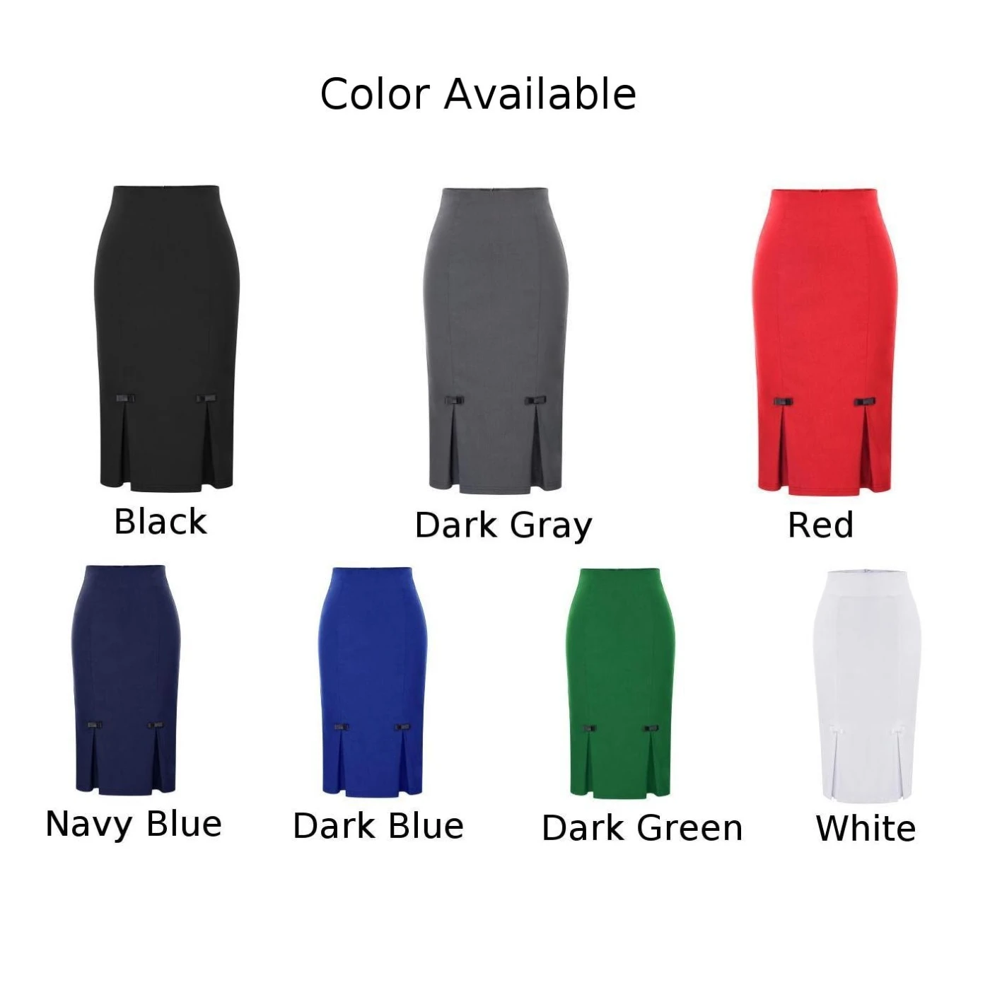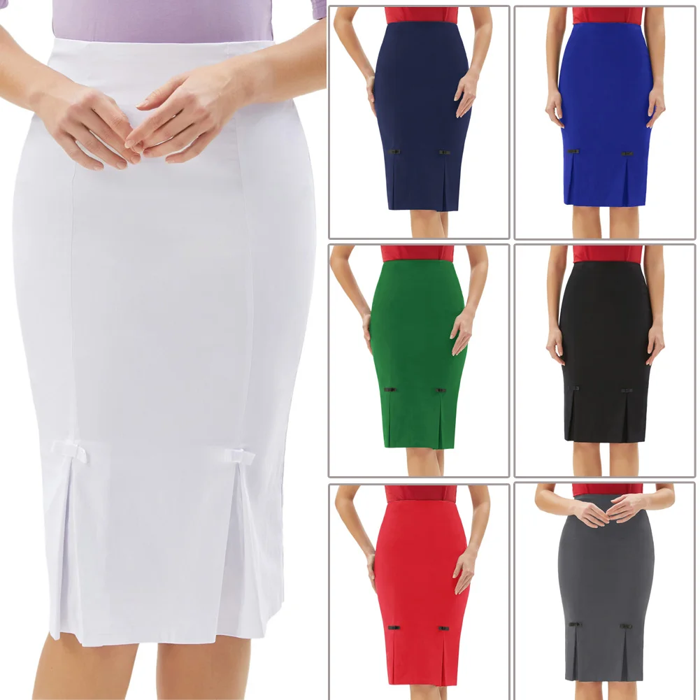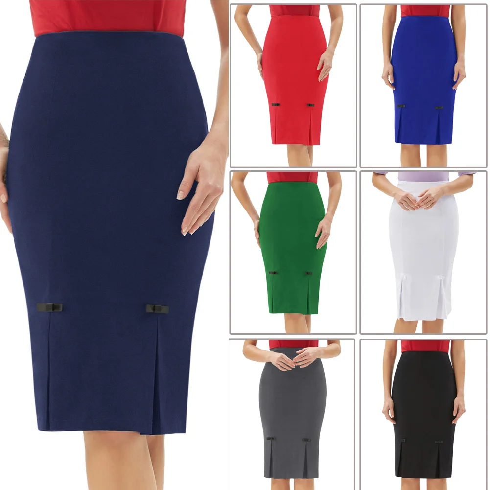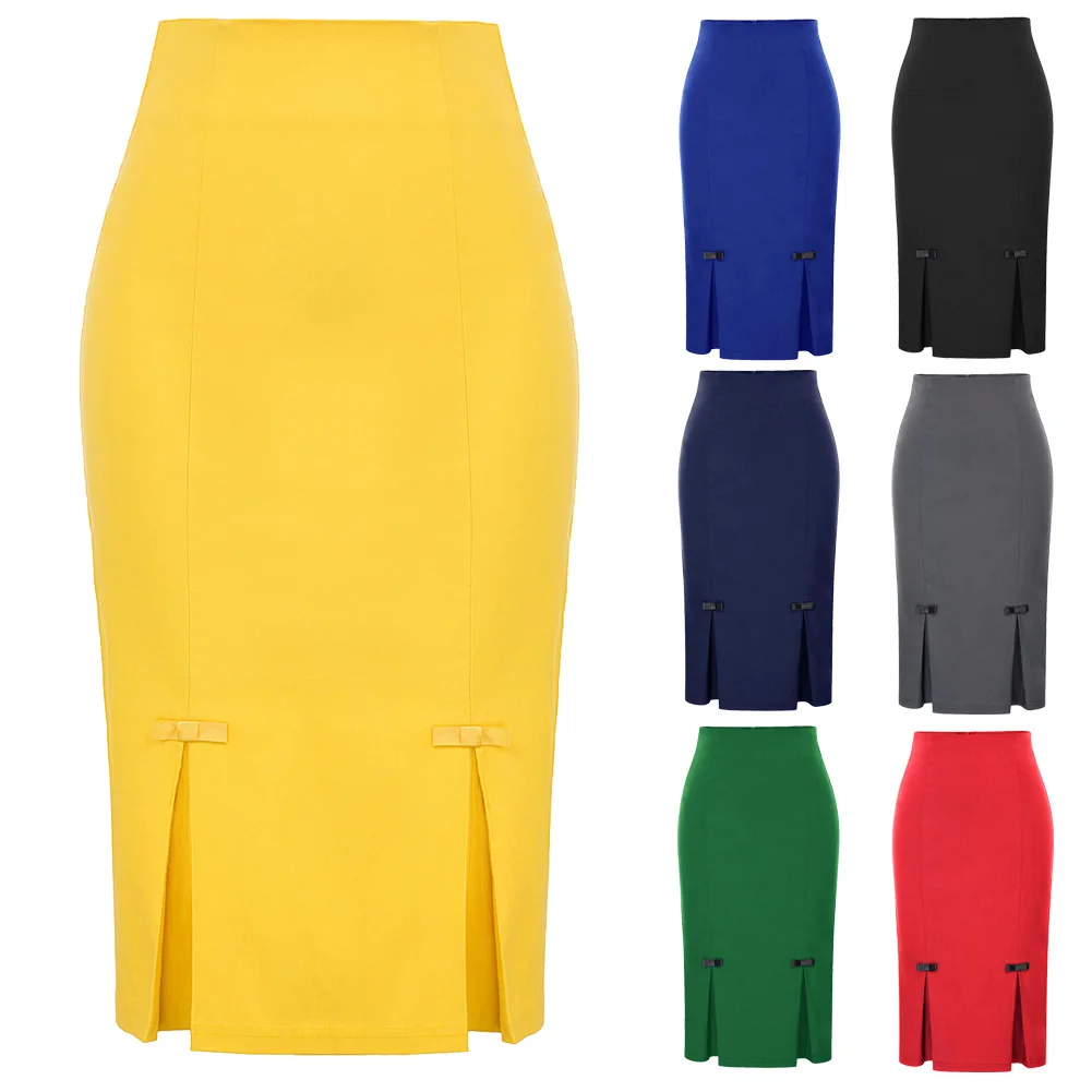 Женская юбка-карандаш с бантом, до колена, с разрезом
