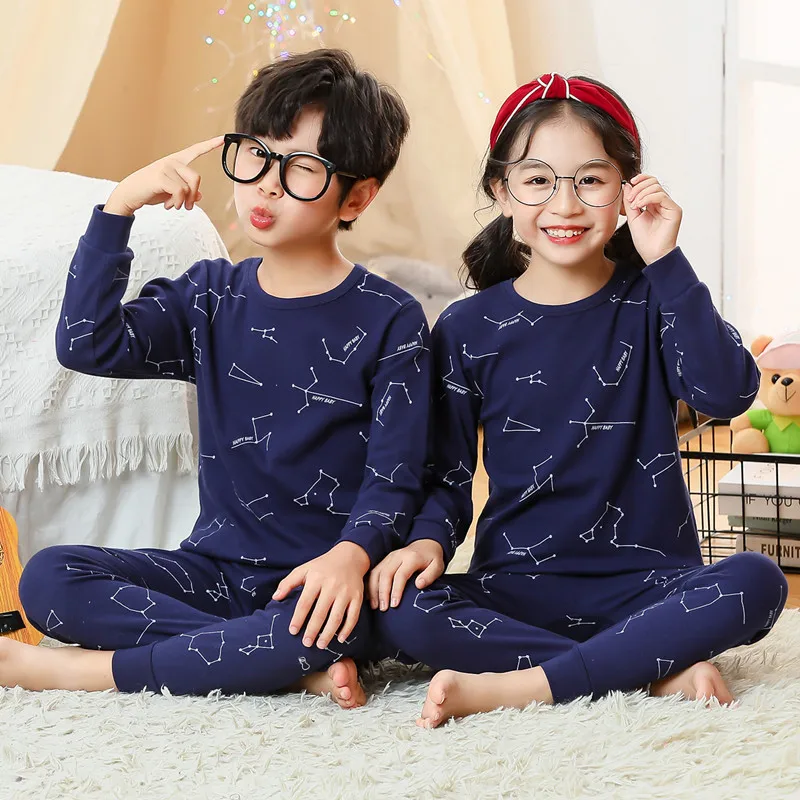 Пижама для мальчиков и девочек, осенняя, хлопковая, с длинным рукавом