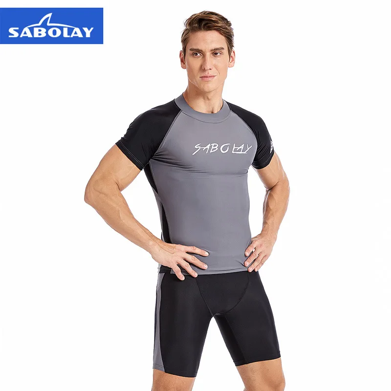 Купальник SABOLAY Мужской Быстросохнущий из лайкры, солнцезащитный, для серфинга, с защитой от ультрафиолета, Рашгард, костюм для дайвинга, плотная пляжная рубашка, короткий чемодан