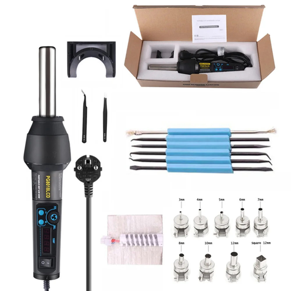 PJLSW портативный комплект теплового пистолета, ветер и температура могут быть настроены по мере необходимости для удовлетворения потребностей различных сценариев. С широким спектром аксессуаров, этот набор оснащен запасными нагревателями, двойными вспомогательными инструментами, антикапельными кронштейнами, антистатическими пинцетами и другими аксессуарами, которые идеально подходят для вас.