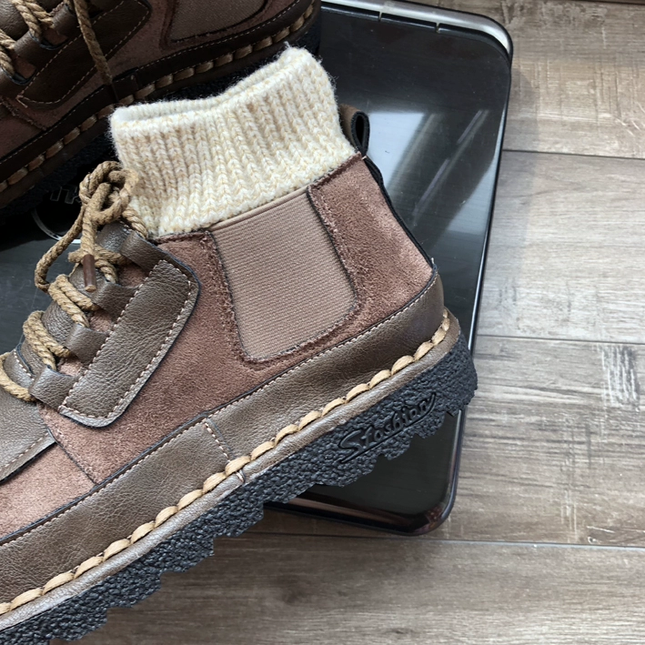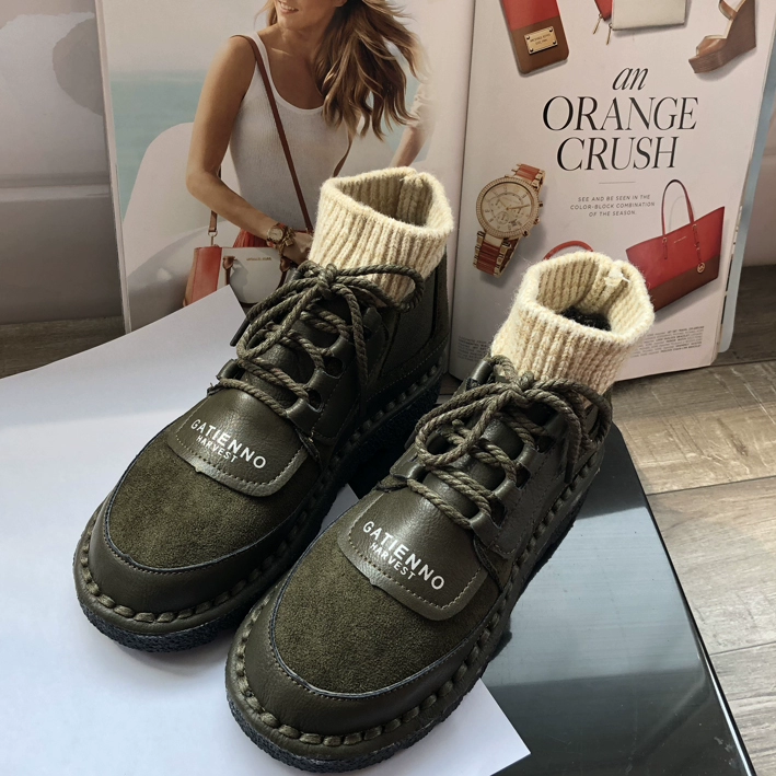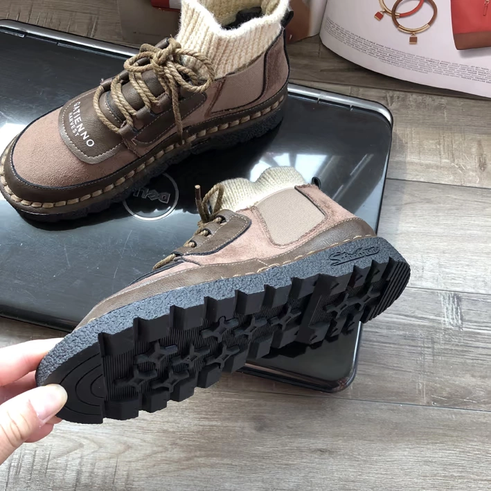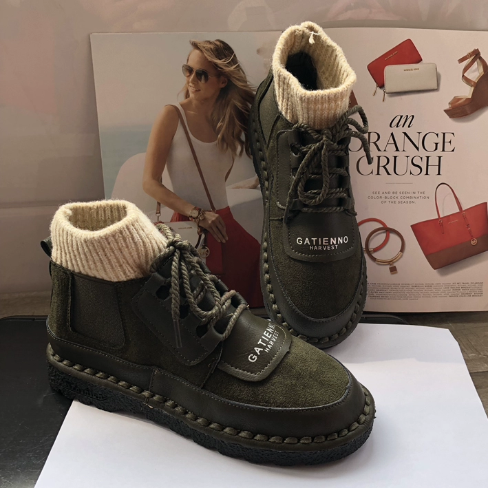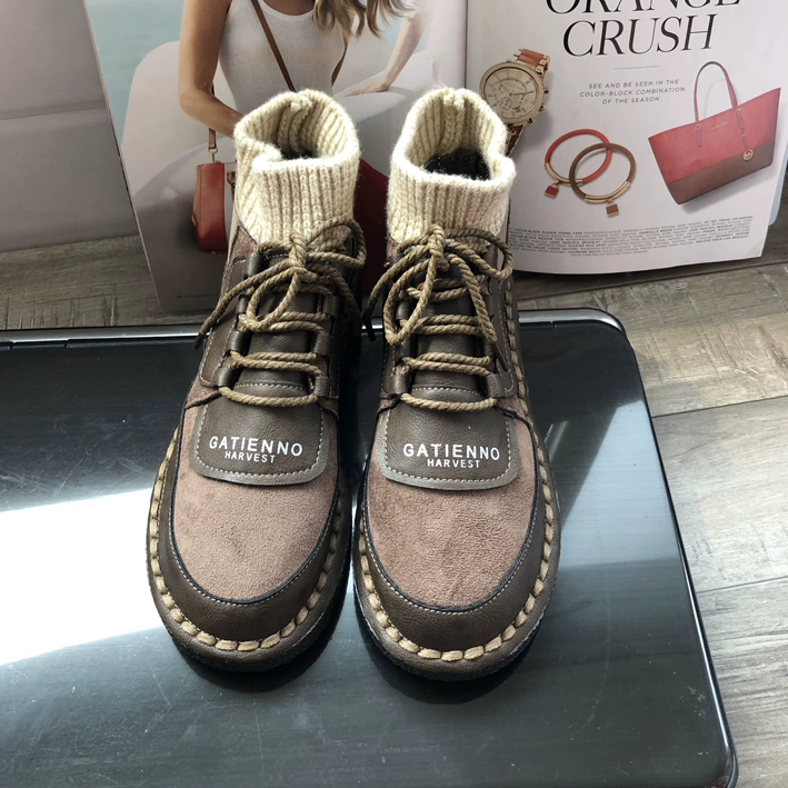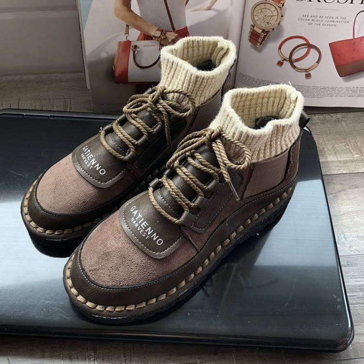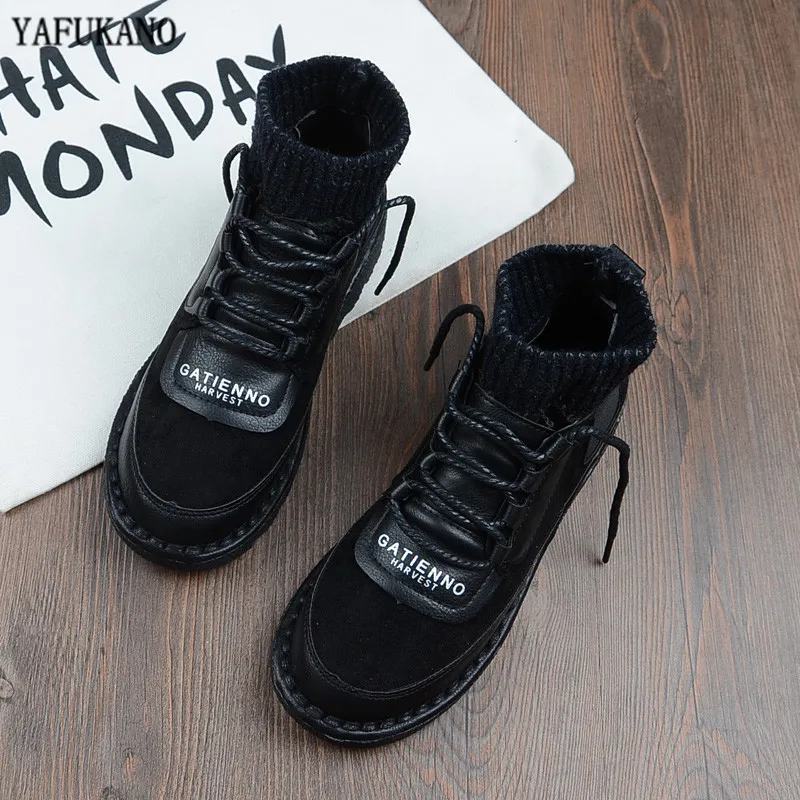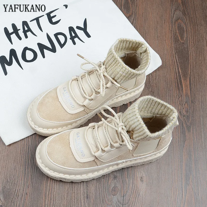 Женские повседневные полусапожки Mori в литературном ретро-стиле, вязаные полусапожки из шерсти с мягкой подошвой, ботинки со шнуровкой на плоской подошве