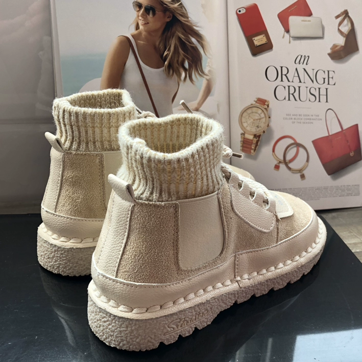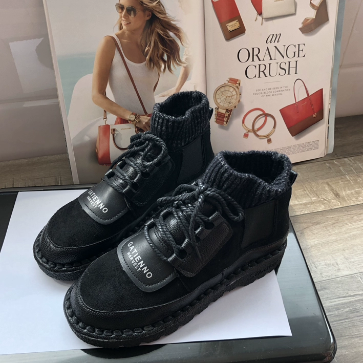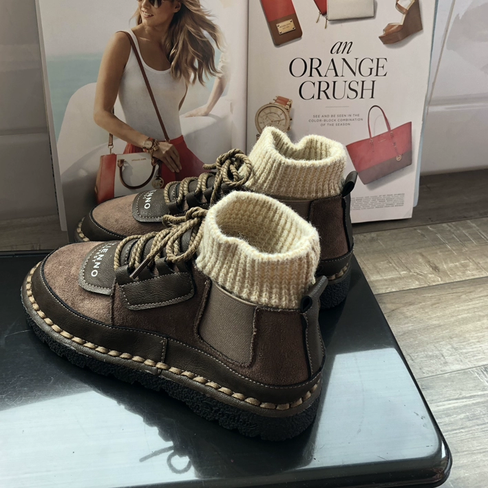 Покупал жене, взял на 2! размера больше.. Надо было еще на 2 по ихней схеме.. А так ботинки легкие, вязаные резинки плохо подшиты к коже..