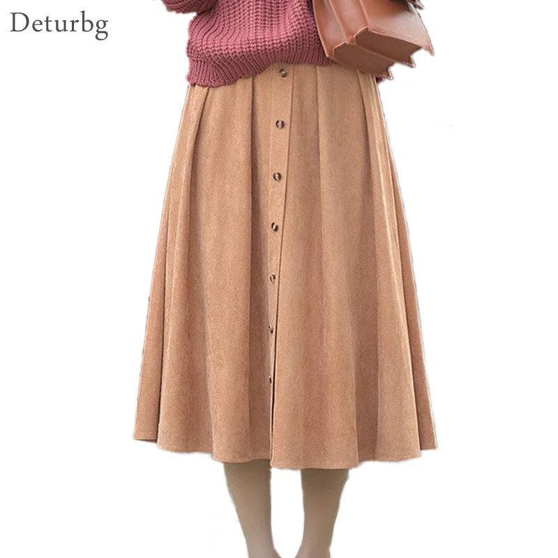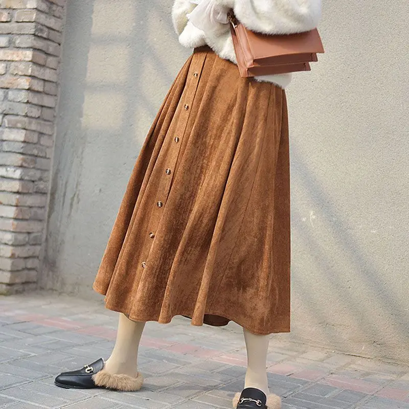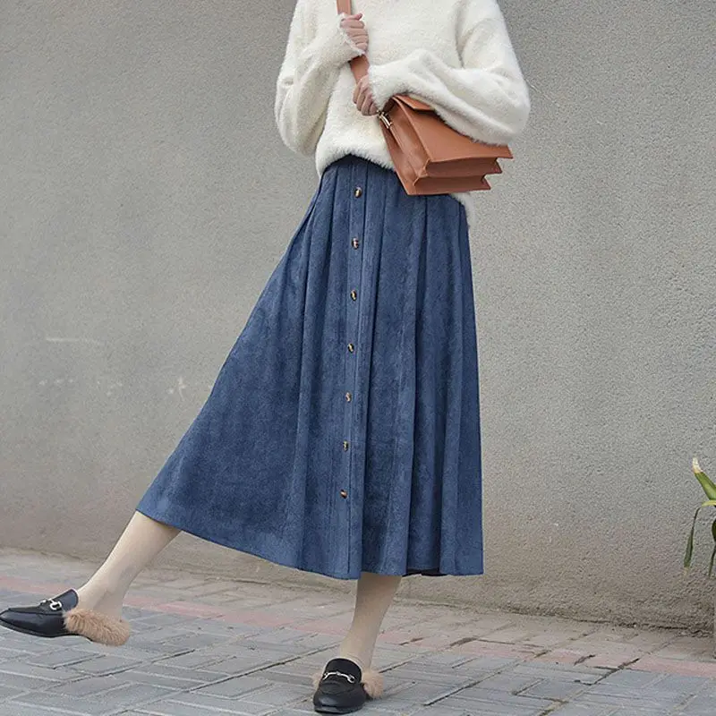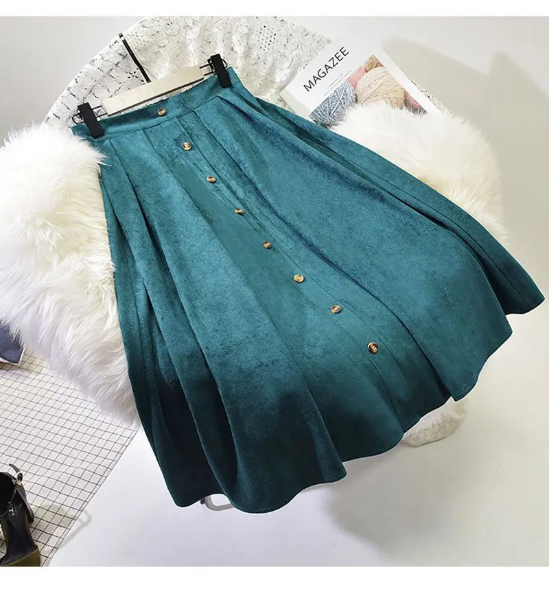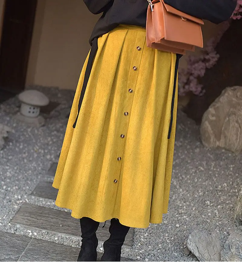 Женская винтажная юбка на пуговицах, однотонная плиссированная юбка в стиле Харадзюку с высокой эластичной талией, зима 2021, P2