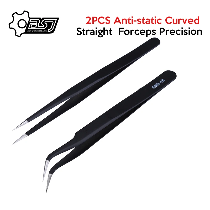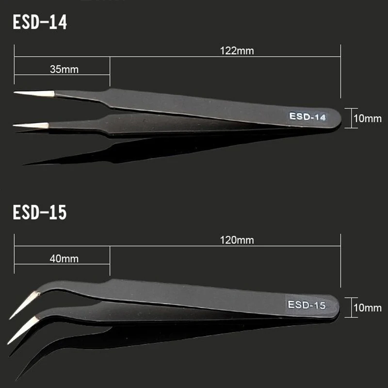 2 шт. ESD-14 ESD-15 антистатические изогнутые прямые наконечники щипцы прецизионные паяльные пинцеты набор электронных антистатических пинцетов инструмент