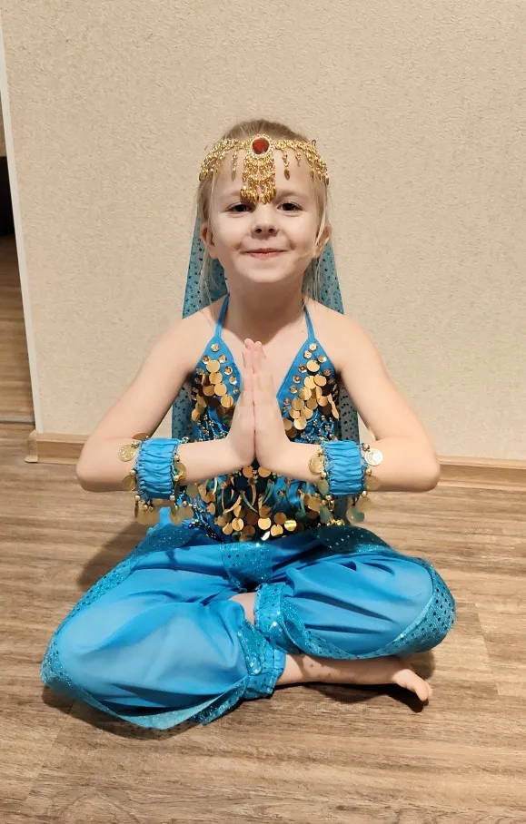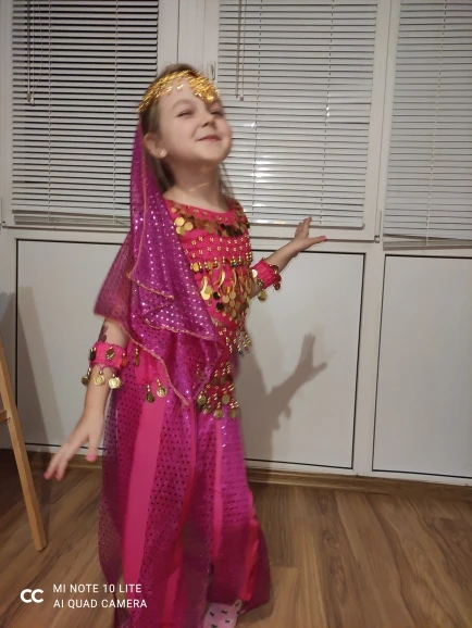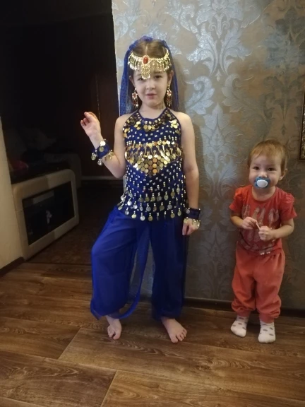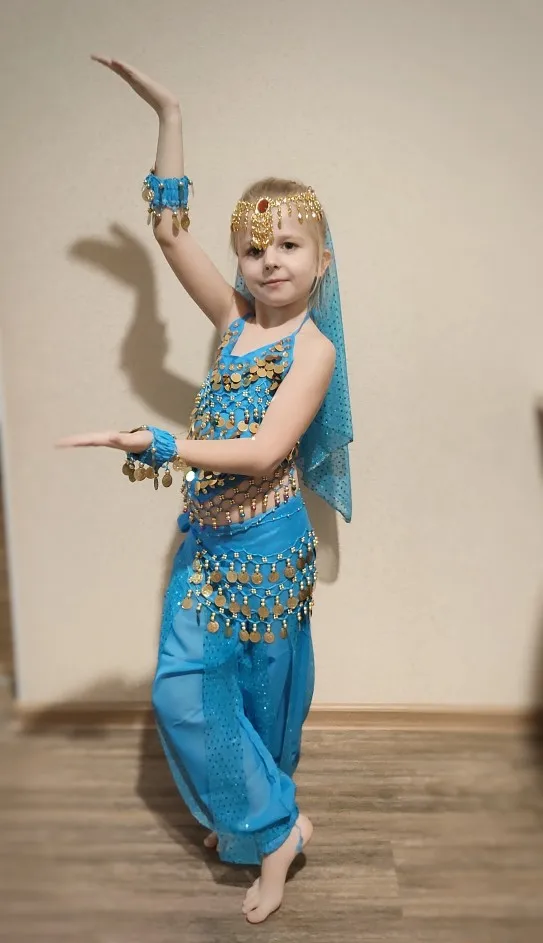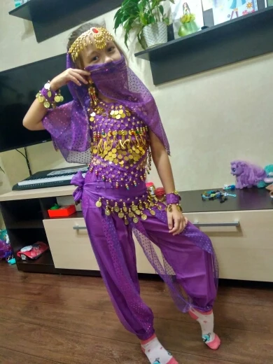 Отличный костюм для танцев, ребенок очень рад, полный комплект, качество хорошее, на выступления. Яркий очень.