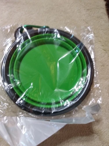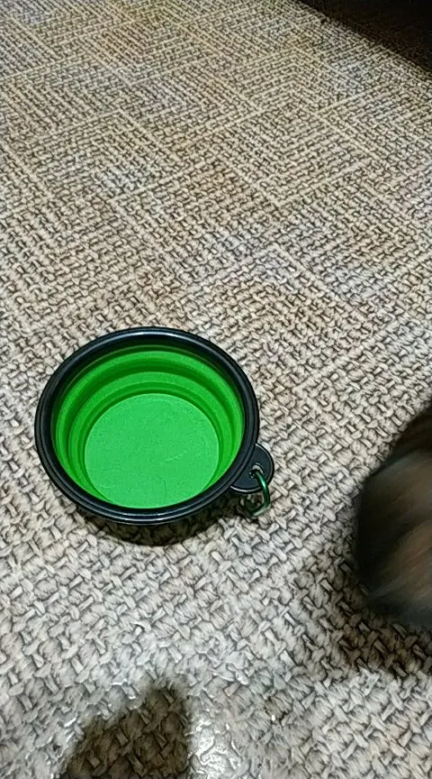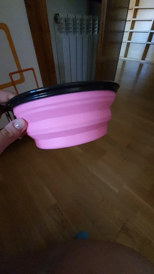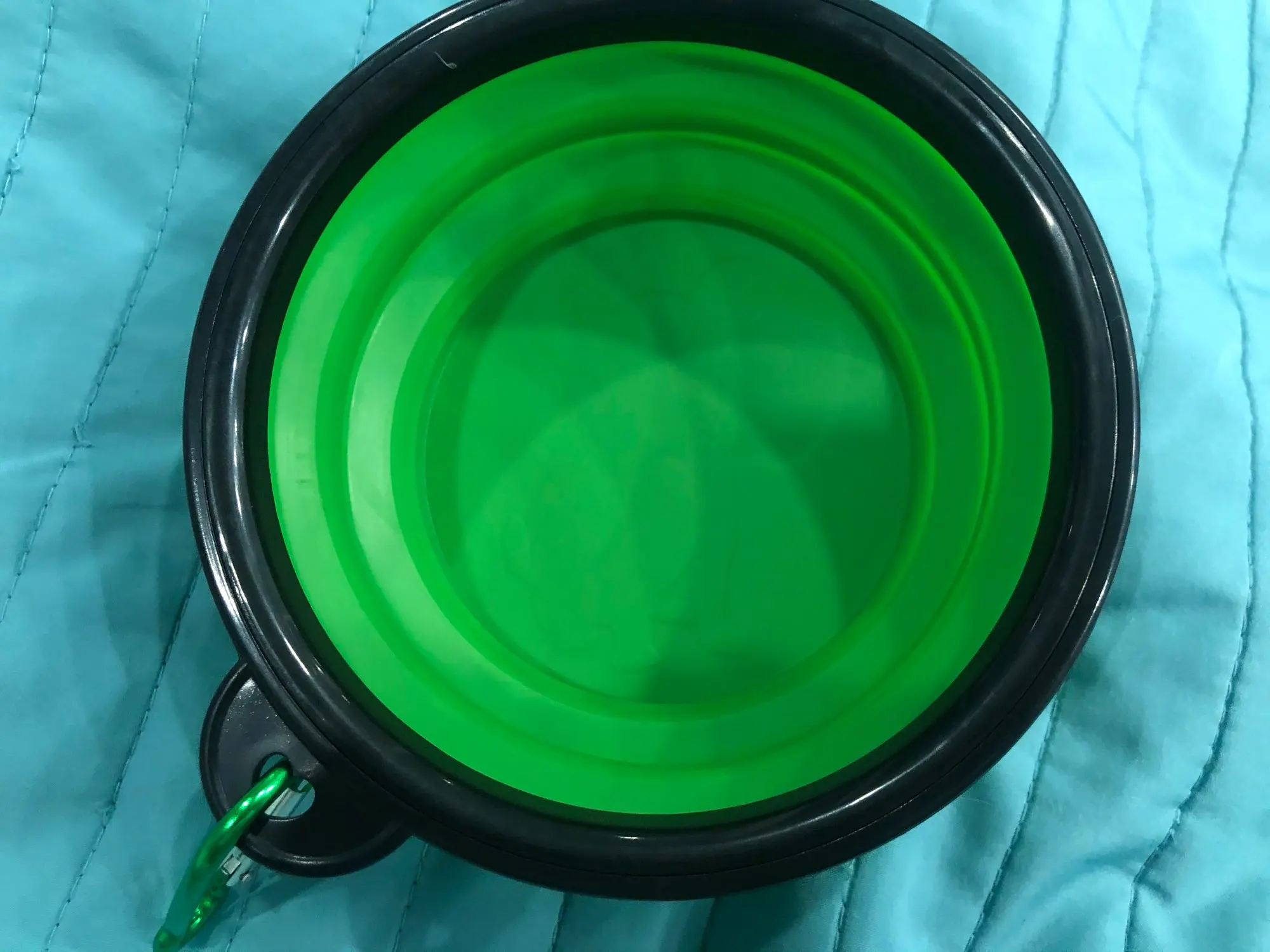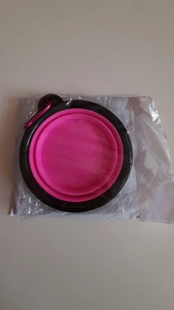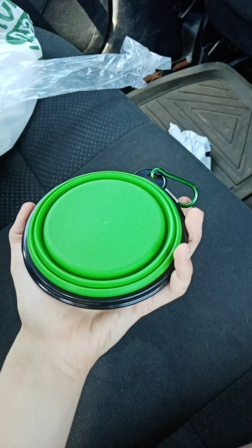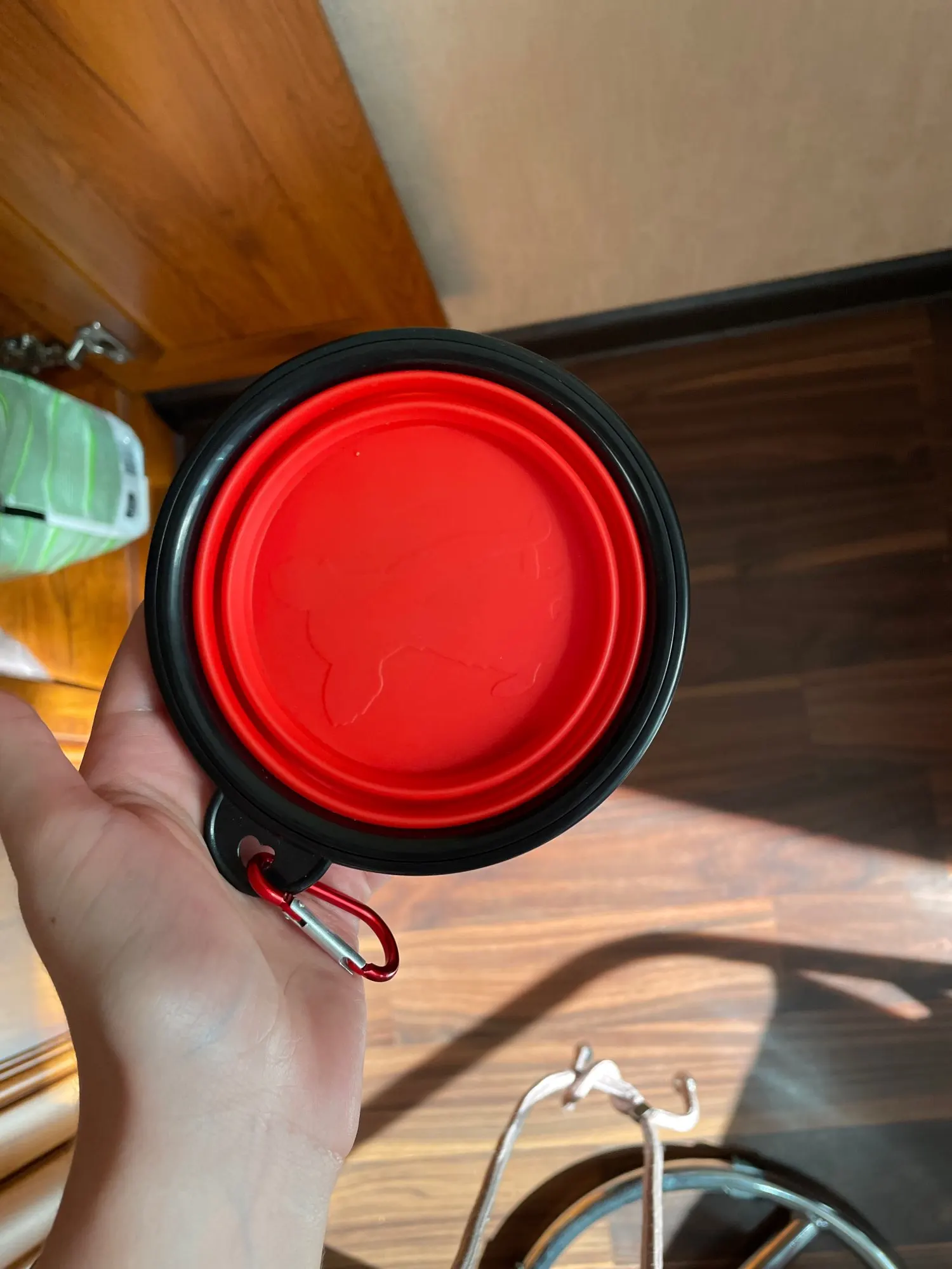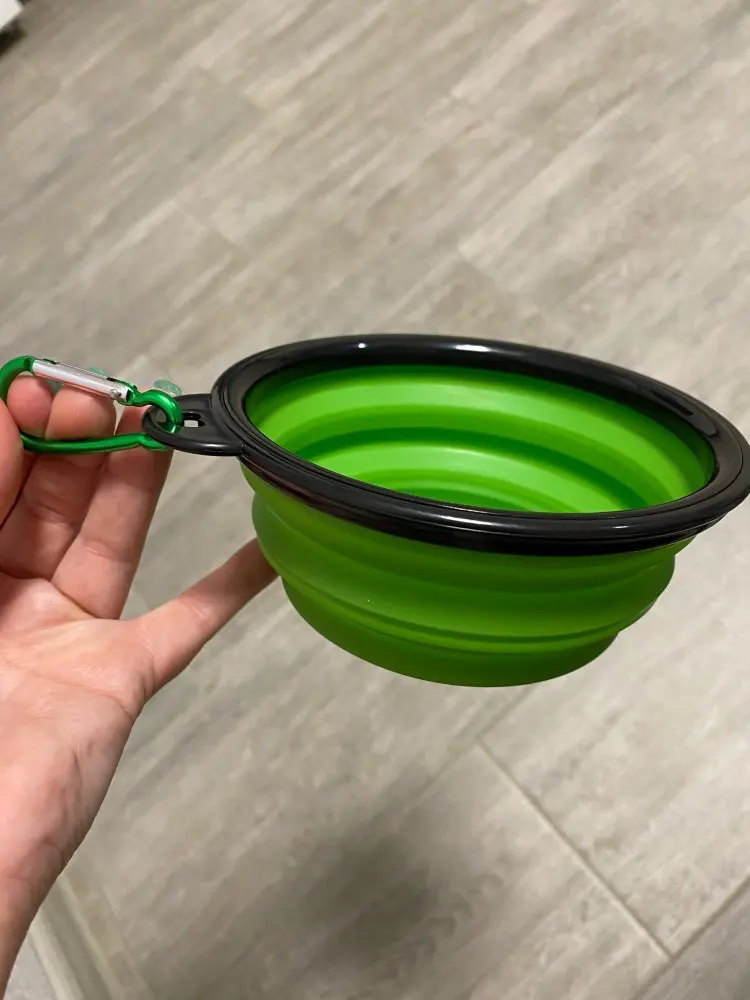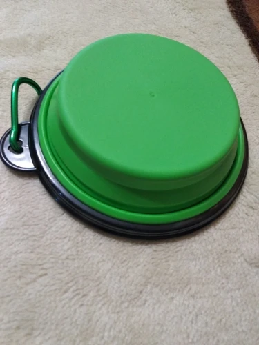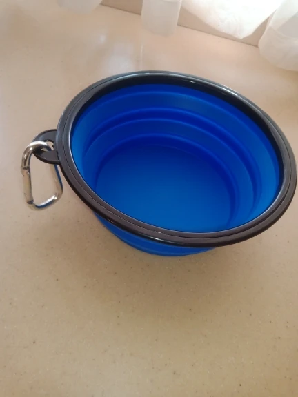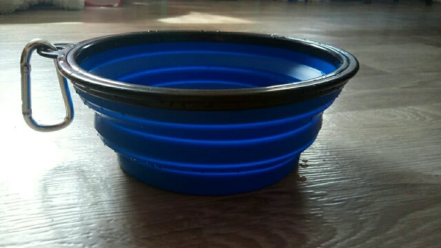 Отличная, маленькая миска. Литр туда вряд ли можно залить, или так кажется. Складывается легко, не пахнёт, приличный карабин. Для собак мелких пород будет хорошо, для средних пород уже маловата.