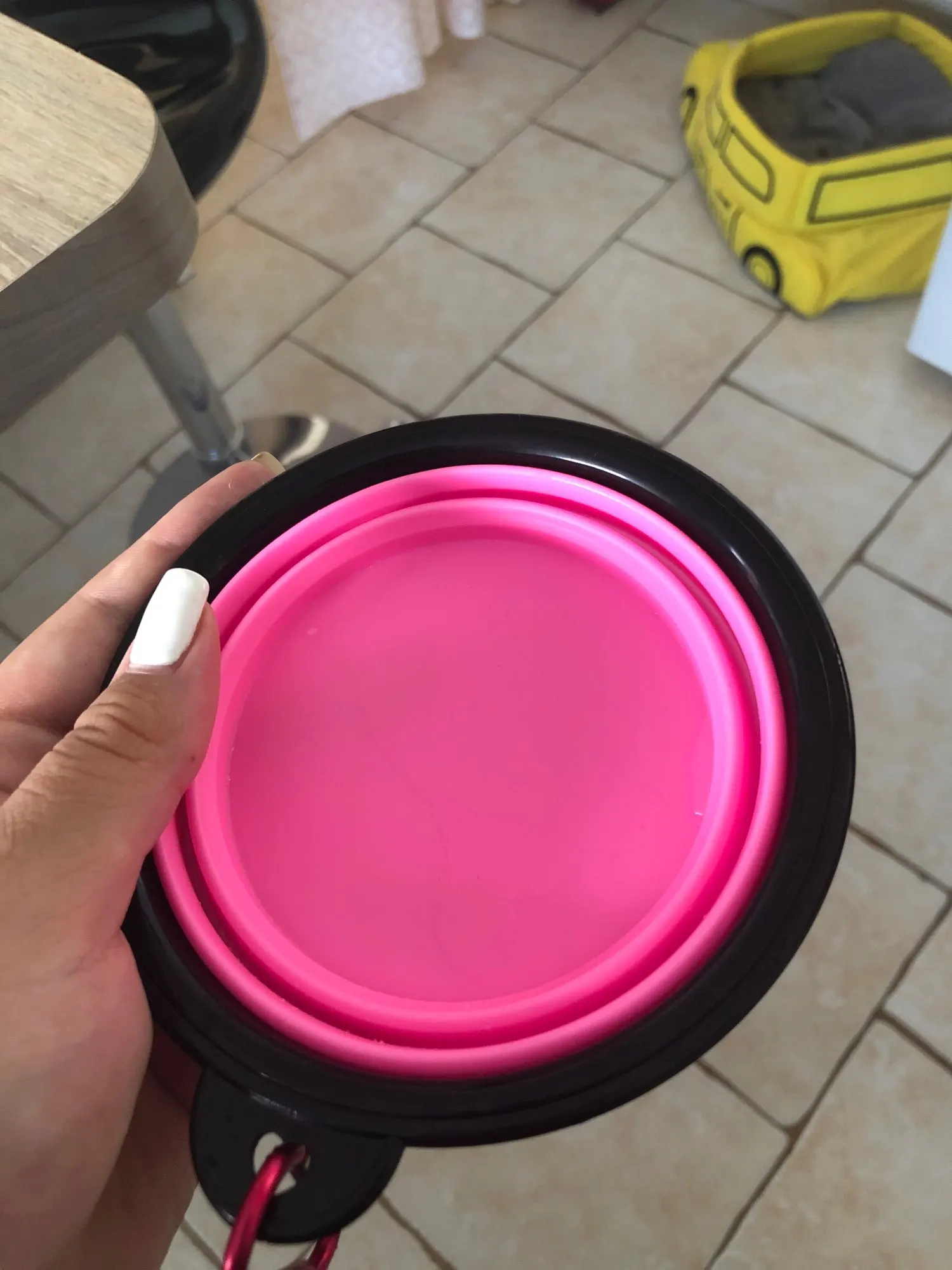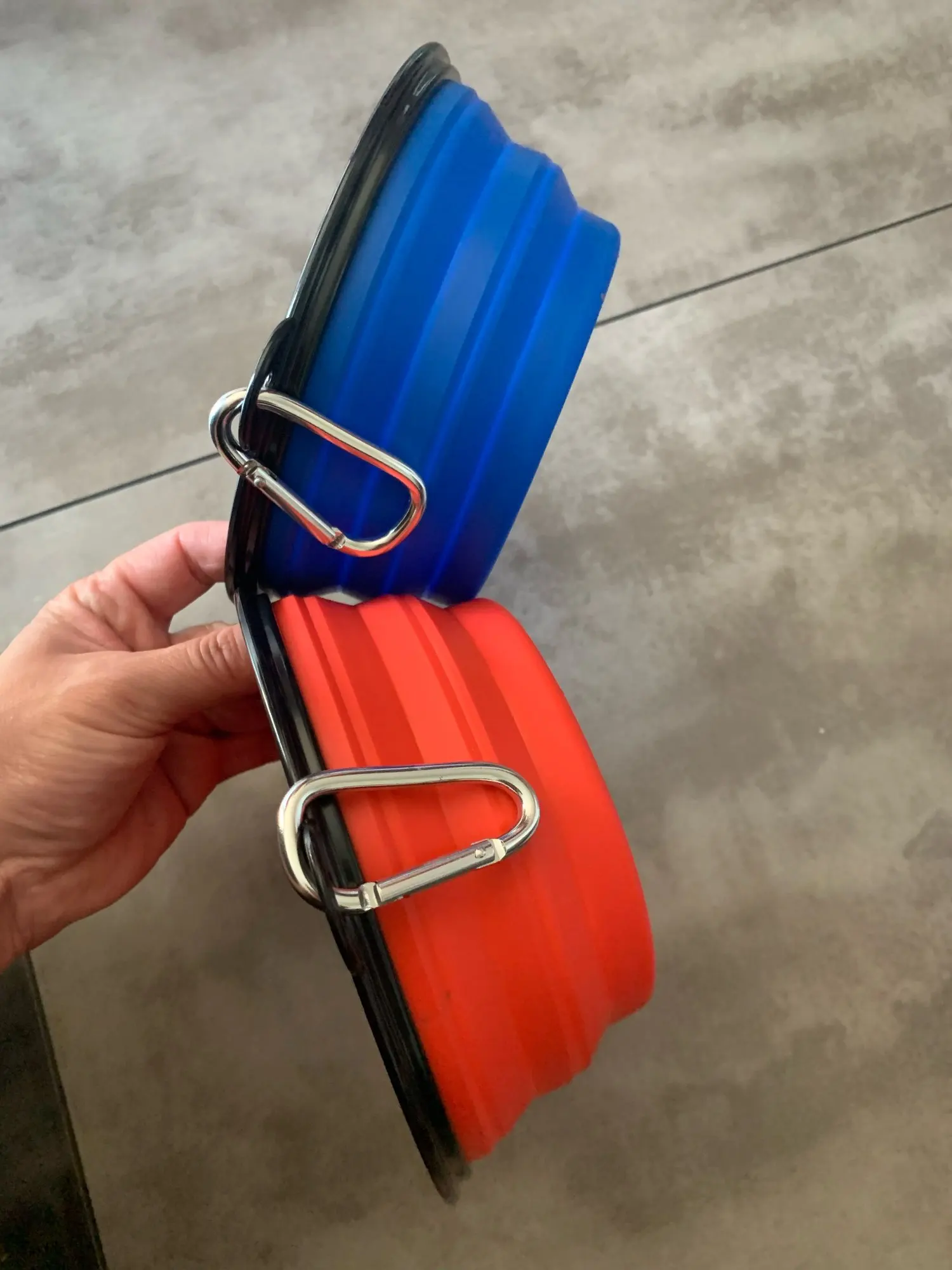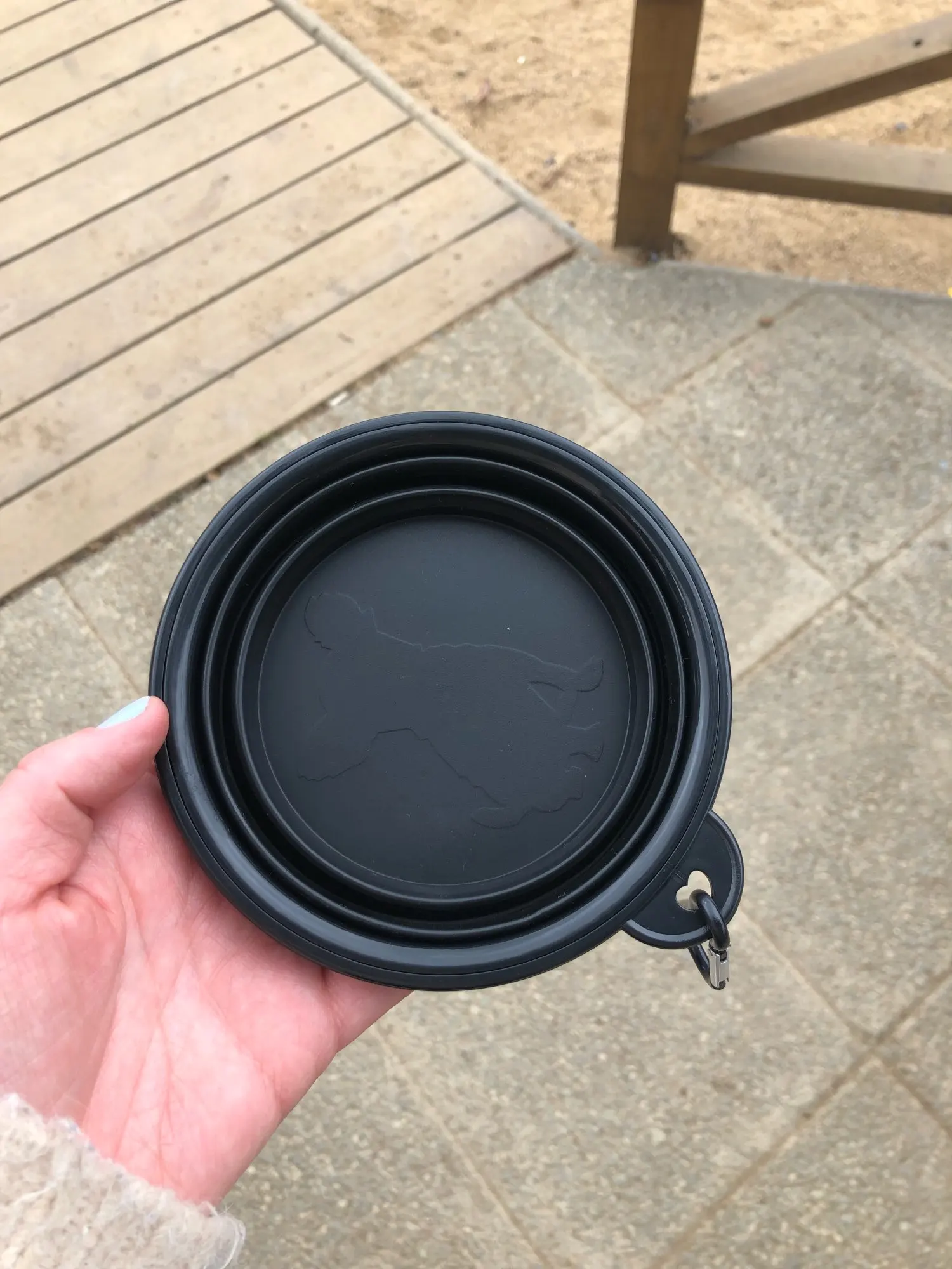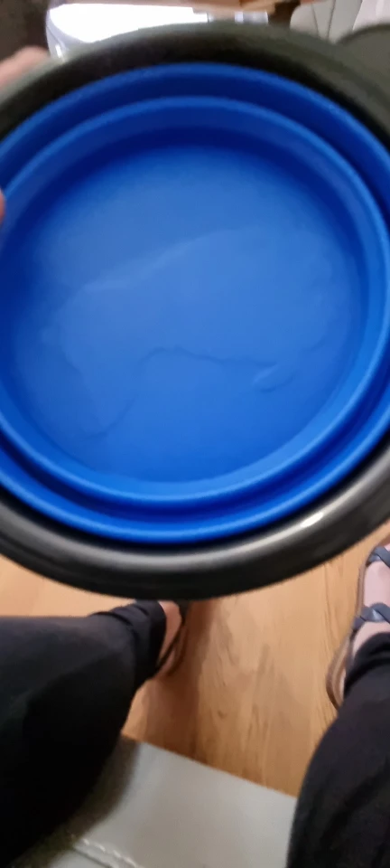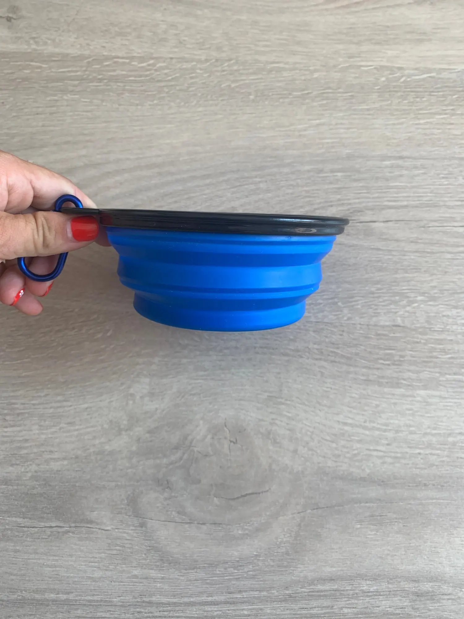 Отличная, маленькая миска. Литр туда вряд ли можно залить, или так кажется. Складывается легко, не пахнёт, приличный карабин. Для собак мелких пород будет хорошо, для средних пород уже маловата.