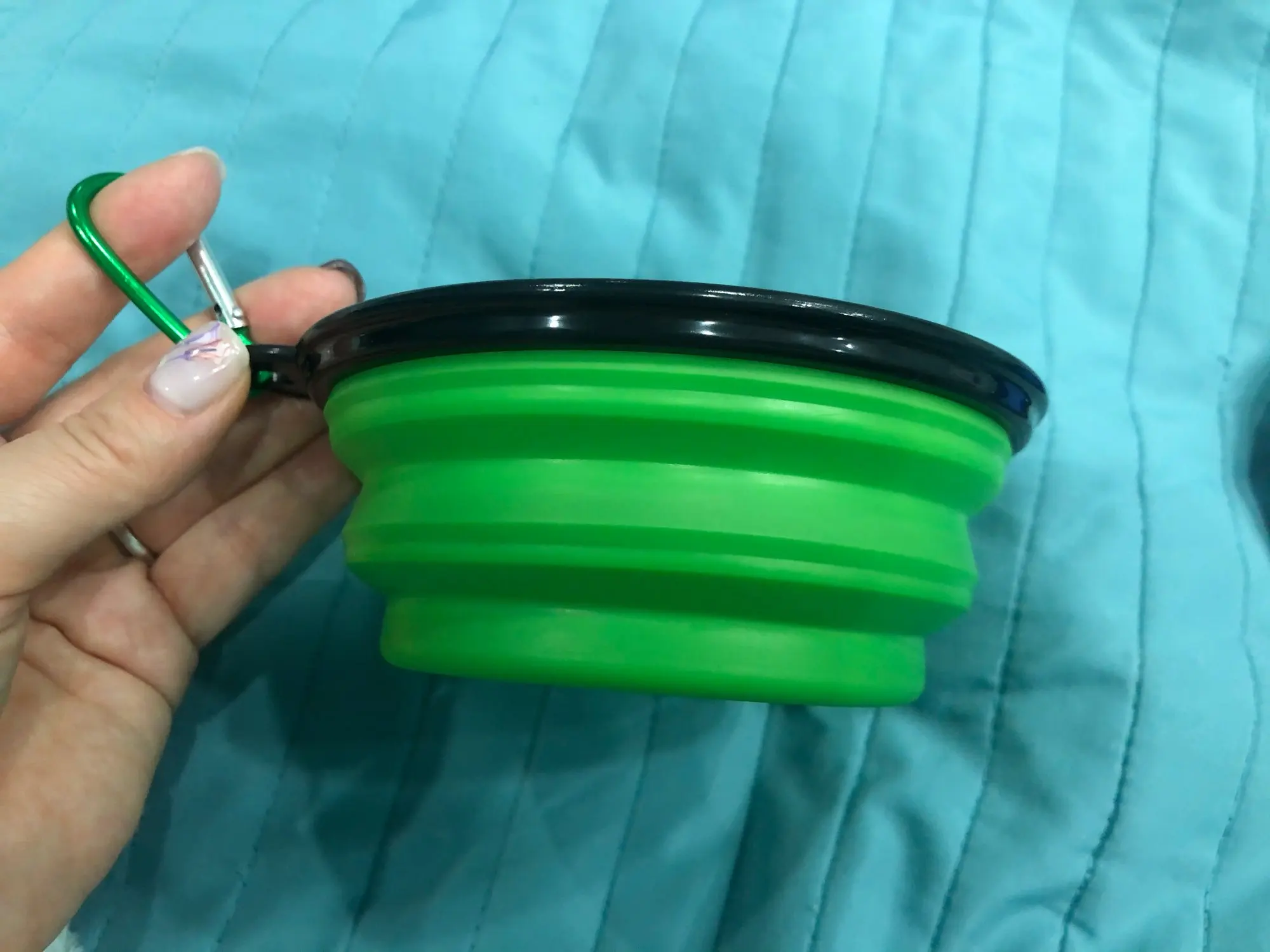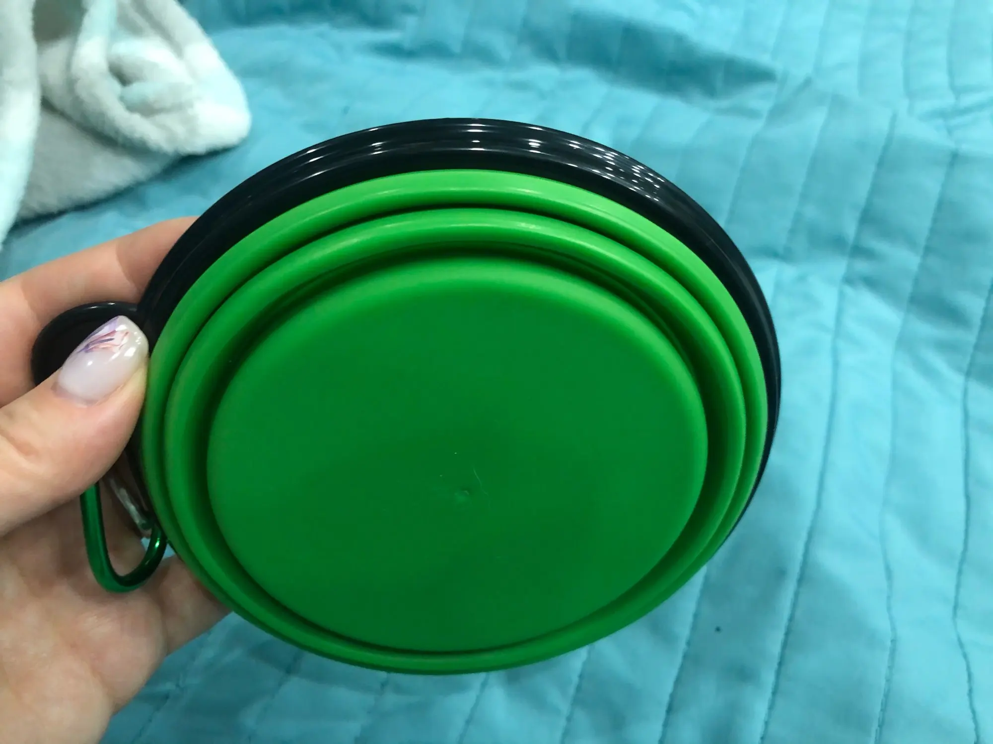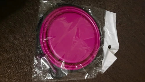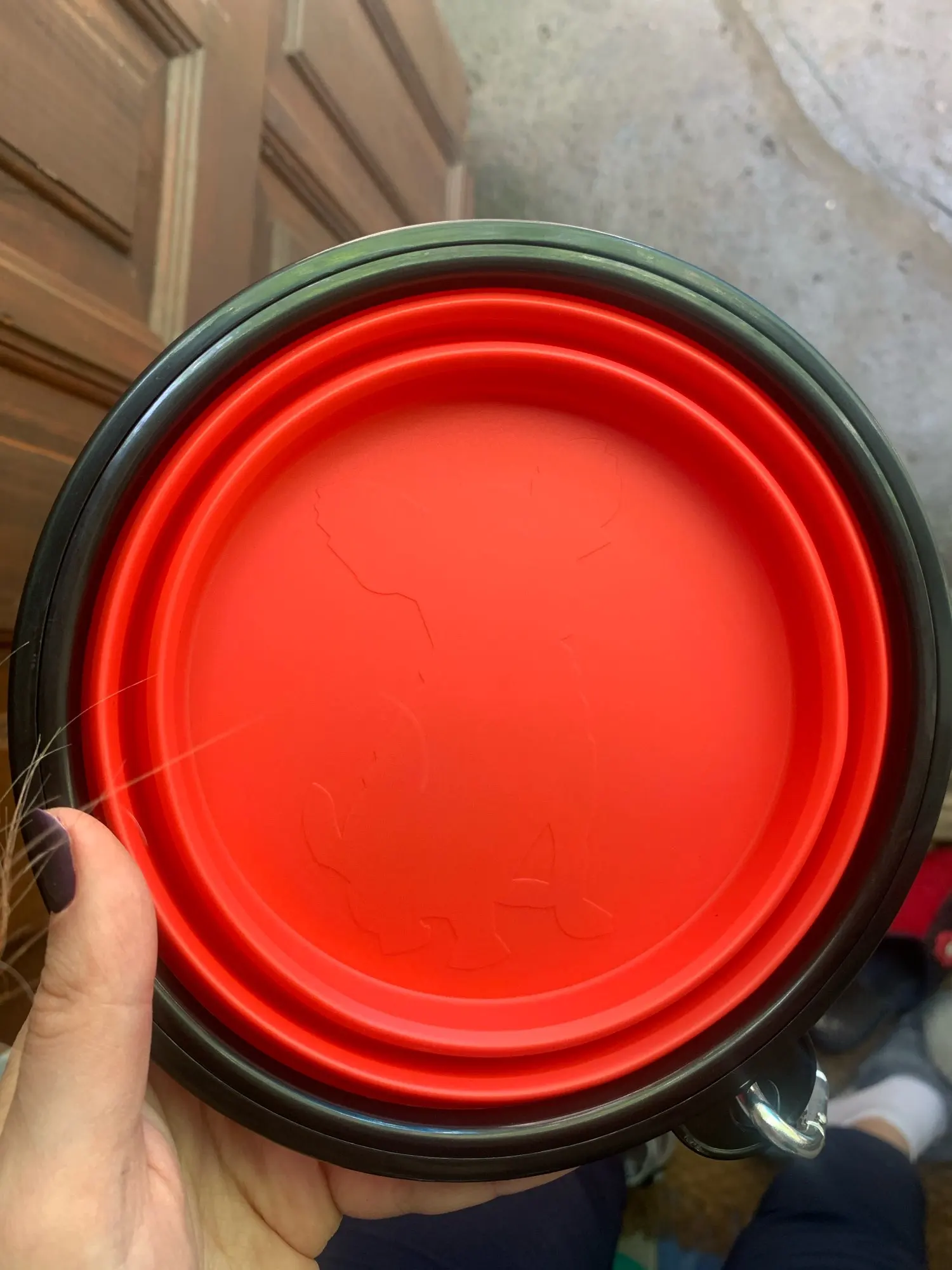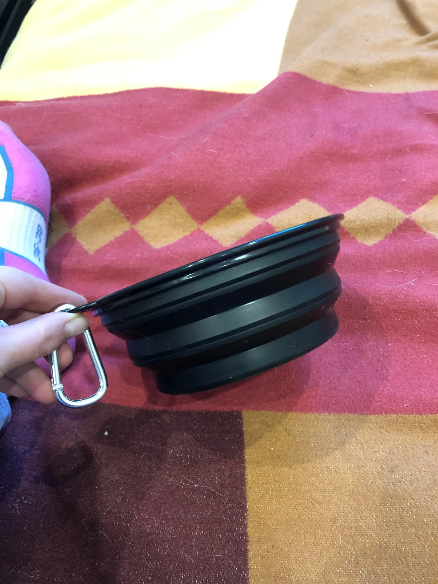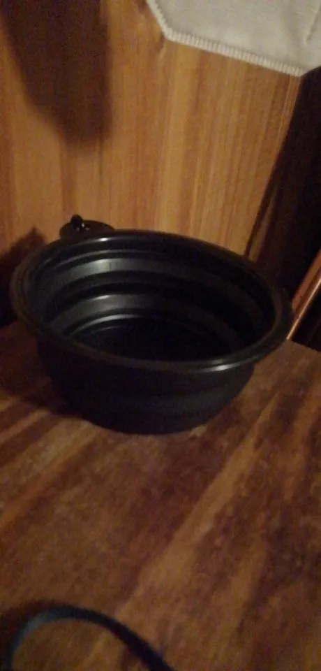 Отличная, маленькая миска. Литр туда вряд ли можно залить, или так кажется. Складывается легко, не пахнёт, приличный карабин. Для собак мелких пород будет хорошо, для средних пород уже маловата.