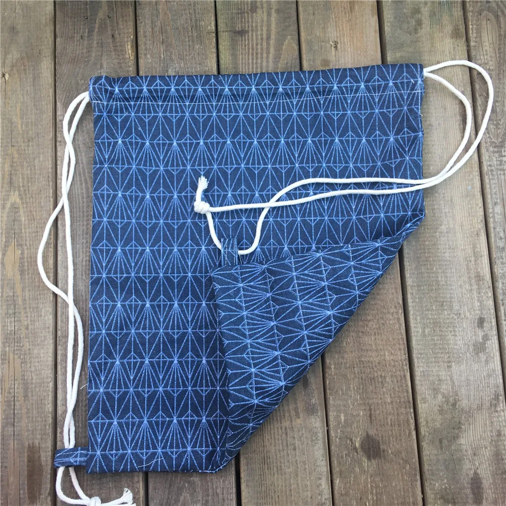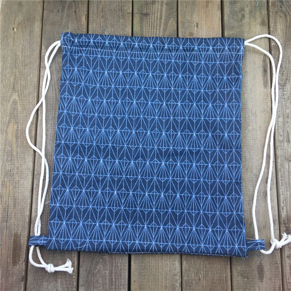 Дорожный рюкзак YILE 8910d из хлопка и льна на шнурке для книг, обуви, сумки с геометрическим принтом и стразами, темно-синий