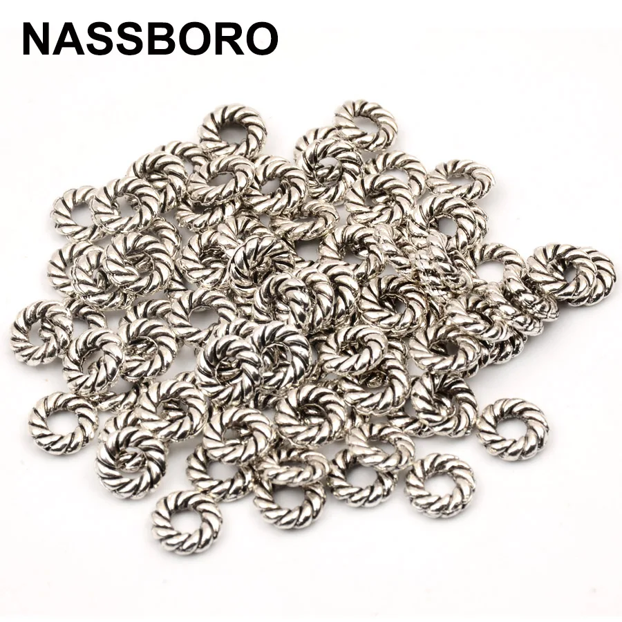 10100 шт./лот 2*8 мм бусины-Подвески Круглые бусины-разделители античные серебряные бусины-разделители для изготовления ювелирных изделий ручной работы 3 мм отверстие