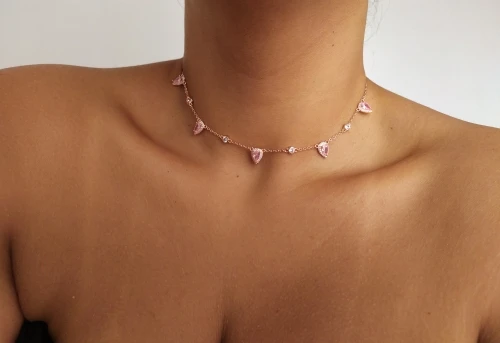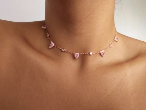 Ожерелье-чокер женское, золотого цвета, с розовым камнем