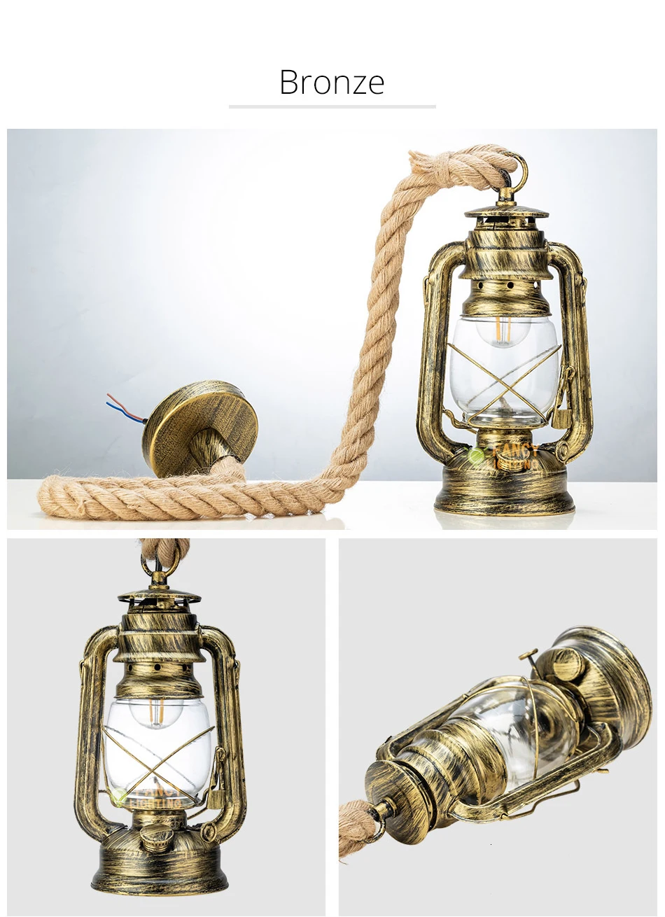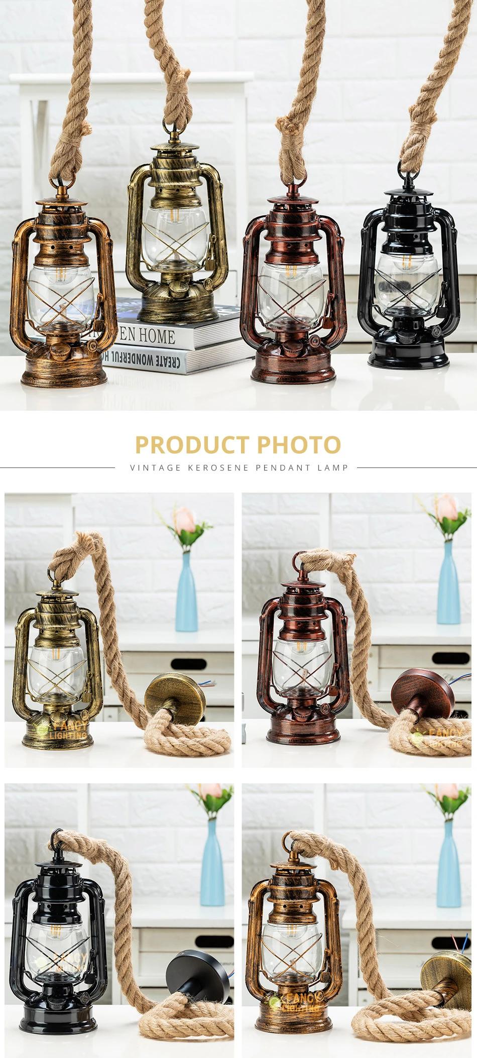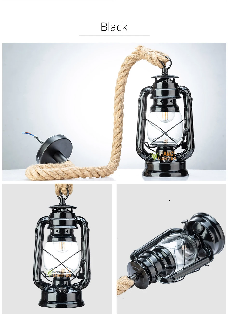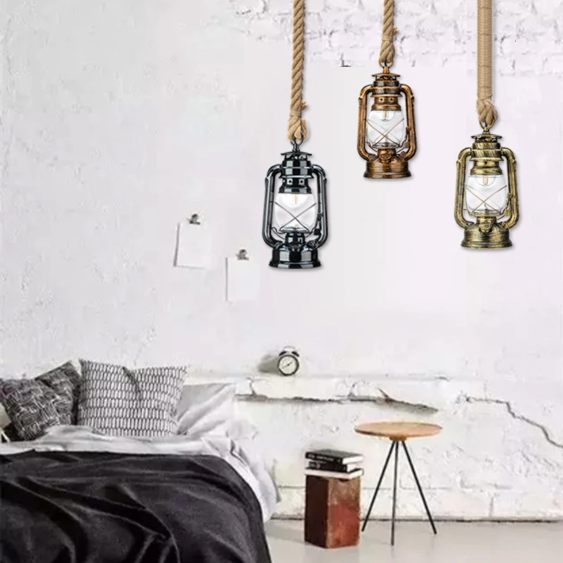 Винтажная керосиновая Подвесная лампа с бесплатной лампой E27 пеньковая веревка Подвесная лампа для домаспальнигостиной промышленные подвесные светильники