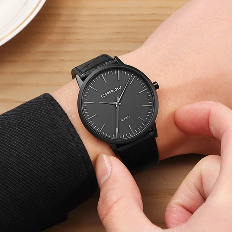 Мужские наручные часы CRRJU, люксовый бренд, минималистичные ультратонкие наручные часы, мужские часы, водонепроницаемые мужские часы, кварцевые часы, мужские часы