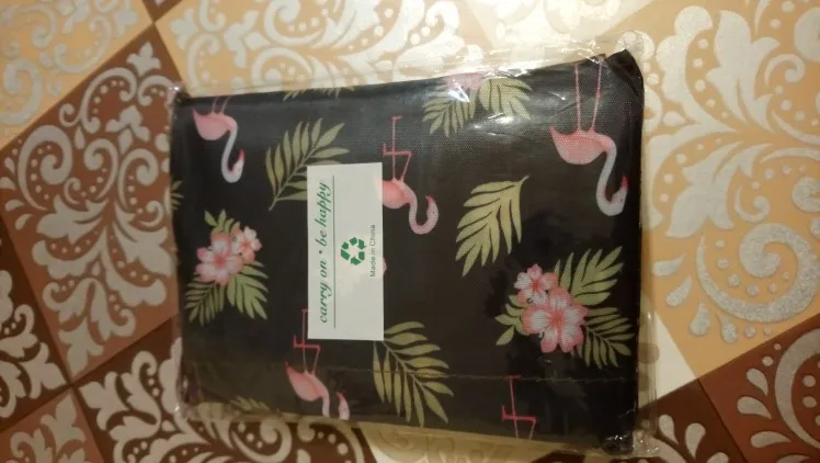 Хорошее качество, плотный материал, ровные швы. Сумка в сложенном виде упаковывается "сама в себя"