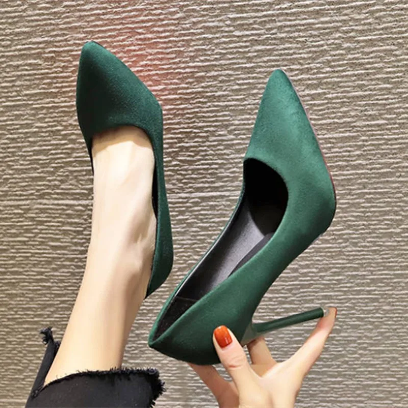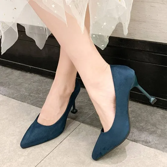 Туфли женские на высоком каблуке, из флока, на весну и лето