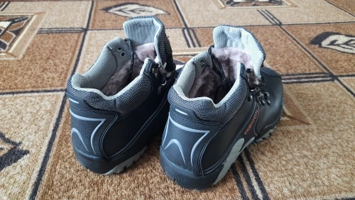 Ботинки тут первый раз заказывал,на свой страх)Но....получил в принципе то,что ожидал.За свои деньги на вид очень не плохо сделаны,аккуратно. На 40 свой размер взял 41 и угадал,сидят чётко, удобные. Единственное мех конечно тонковат совсем и местами лезет....думаю притопчется быстро, не на холодную зиму.В целом,за такие деньги больше чем доволен!Пришли довольно быстро,но с отслеживанием конечно трэш был))Интересно,никакой коробки даже,просто в двойной целован,но все целое ничего не помялось.Фото прилагаю. Рекомендую!