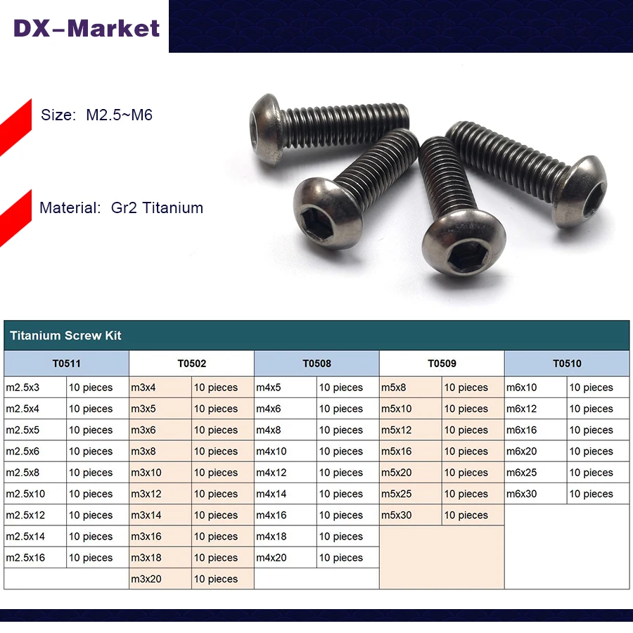 Набор титановых болтов с плоской головкой m2 m2.5 m3 m4 m5 m6, Набо...