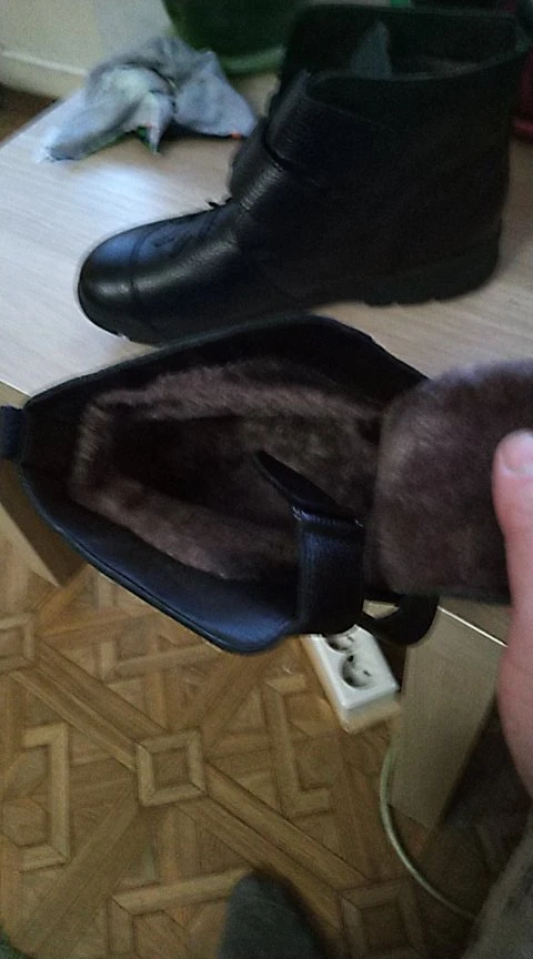 Брала 11.11. Пришли быстро по почте РФ. Ботинки мне обошлись в 1175 рублей. Брала на стопу 26 см- 43 размер, впринципе сел нормально, можно поддеть теплый носок. Качество=Цена. Не понравились. Дико воняют краской, пальцы к ним липнут. Кривые швы, кривая обрезка материала. Липучки со временем выйдут из строя. На фото подошва одна с названием фирмы, приходит с другой подошвой на которой есть дебильная надпись "Sport" сбоку. Меня посетили мысли, что это подделка. Кожа вроде как и вправду кожа, но качество "ну такое", она кажется какой-то сухой и если ее пошипать, то в руках остаются волокна. Возвращаюсь к рассказу о вонючей краске: они реально очень воняют и липкие. На них нанесен толстый слой краски. На одном ботинке было плохо прокрашено и имелись пятна и была заусенца, потянув за которую, (подумав, что это клей или царапина), краска просто отодралась. Если залезть под швы, то там краски нет, а есть черный матовый цвет. У одного ботинка кожа скукоженная на лицевой стороне. Много минус
