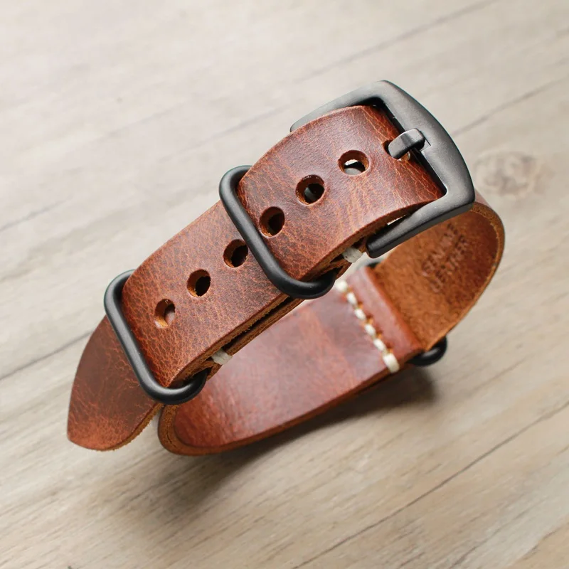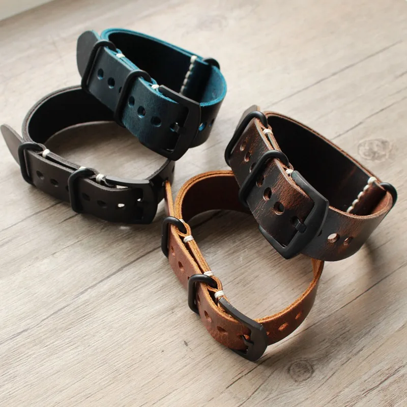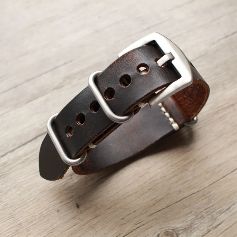 Кожаный длинный ремешок для часов ручной работы crazy horse кожаный Zulu Nato 20 мм 22 мм 24 мм с черным серебряным кольцом с пряжкой