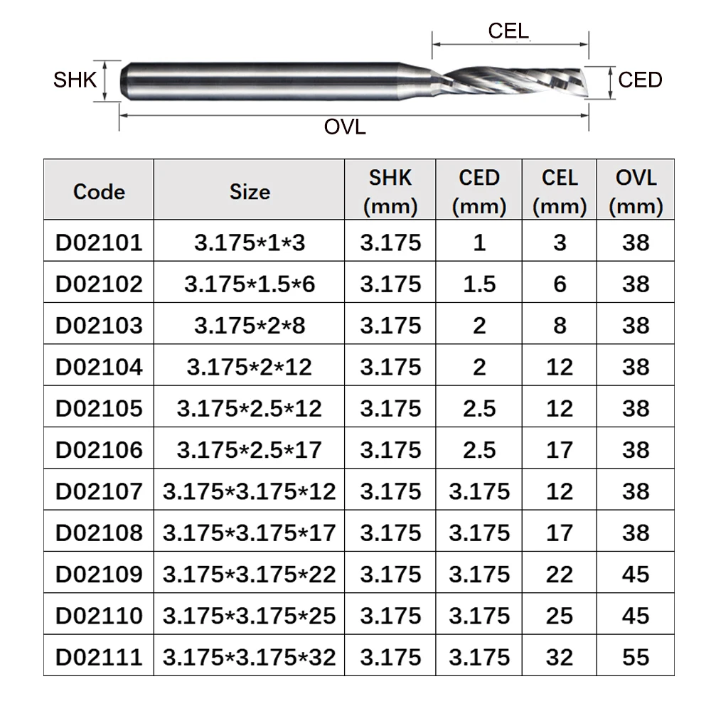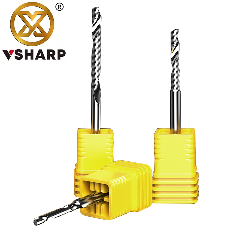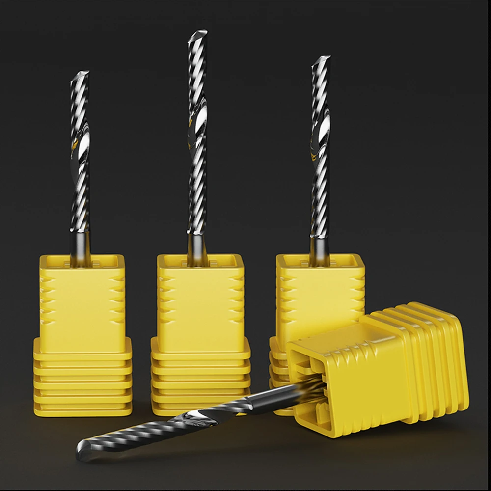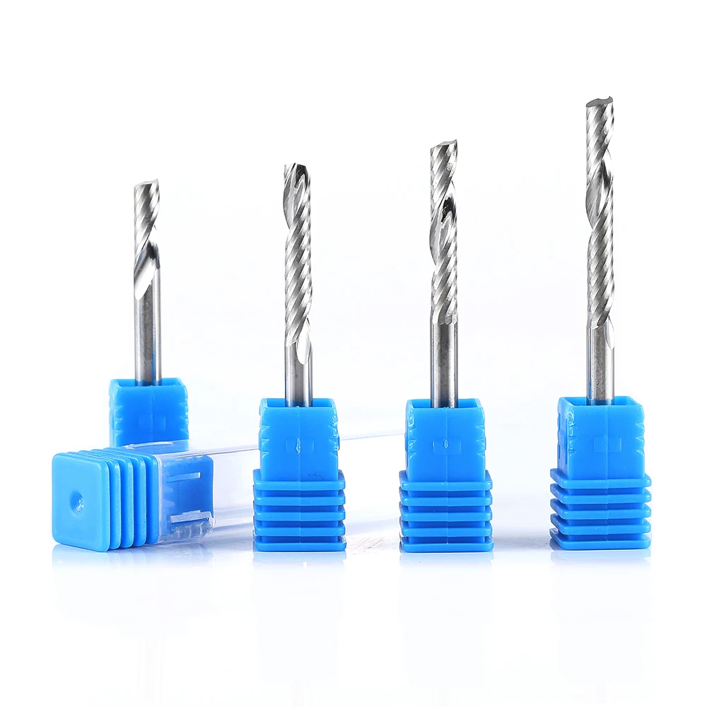 Спиральный Фрезерный резак с 1 канавкой, фрезы для гравировки из карбида вольфрама, инструменты с ЧПУ для акрила, дерева, МДФ, хвостовик 3,175, 4, 6, 8 мм, Концевая фреза