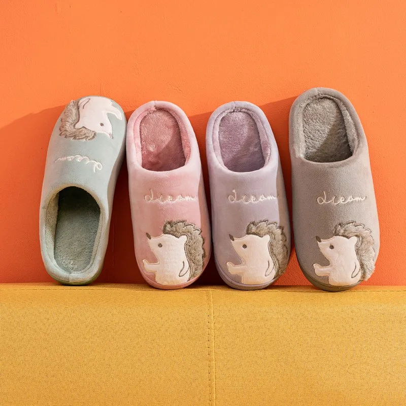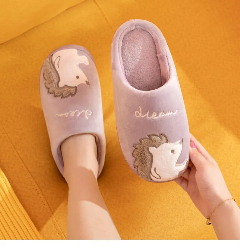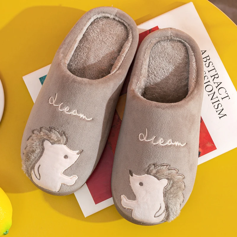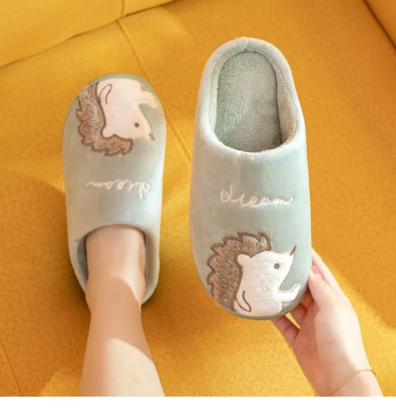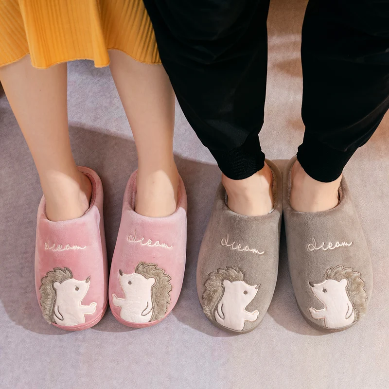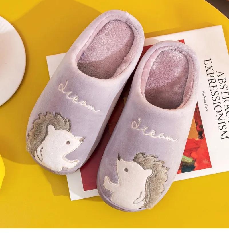 тапочки для дома тапки теплые зима Тапки женские с мехом и рисунком ежика тапки женские домашние, плюшевые, для дома и улицы, зимние, для пар