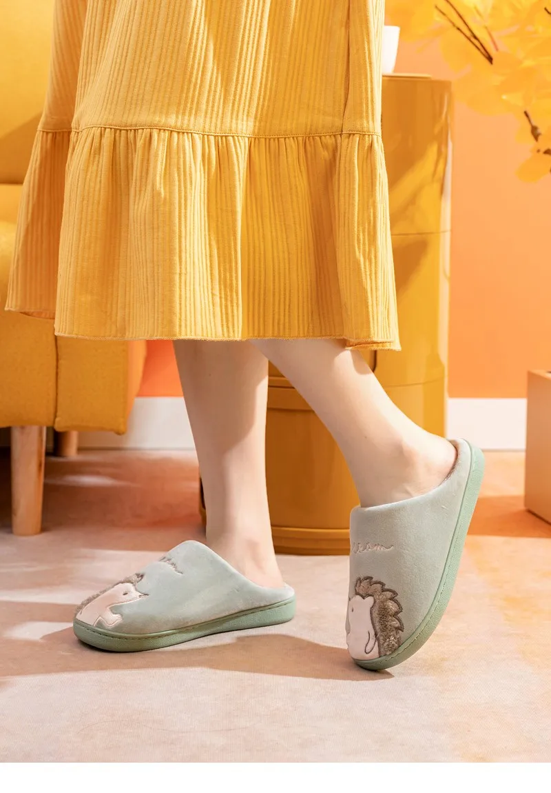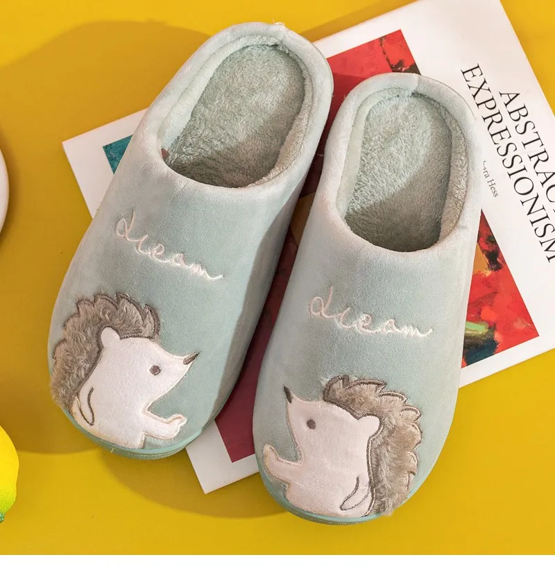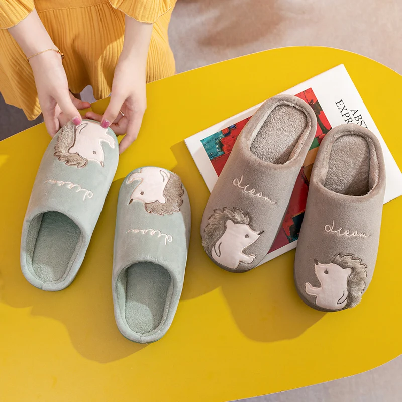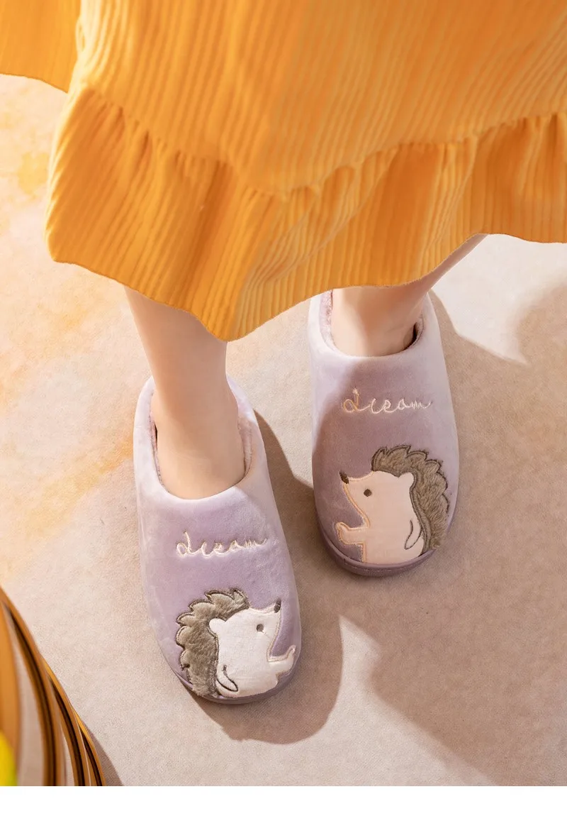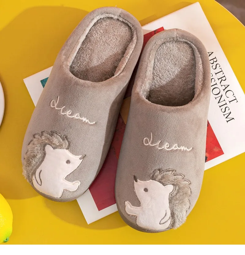 тапочки для дома тапки теплые зима Тапки женские с мехом и рисунком ежика тапки женские домашние, плюшевые, для дома и улицы, зимние, для пар