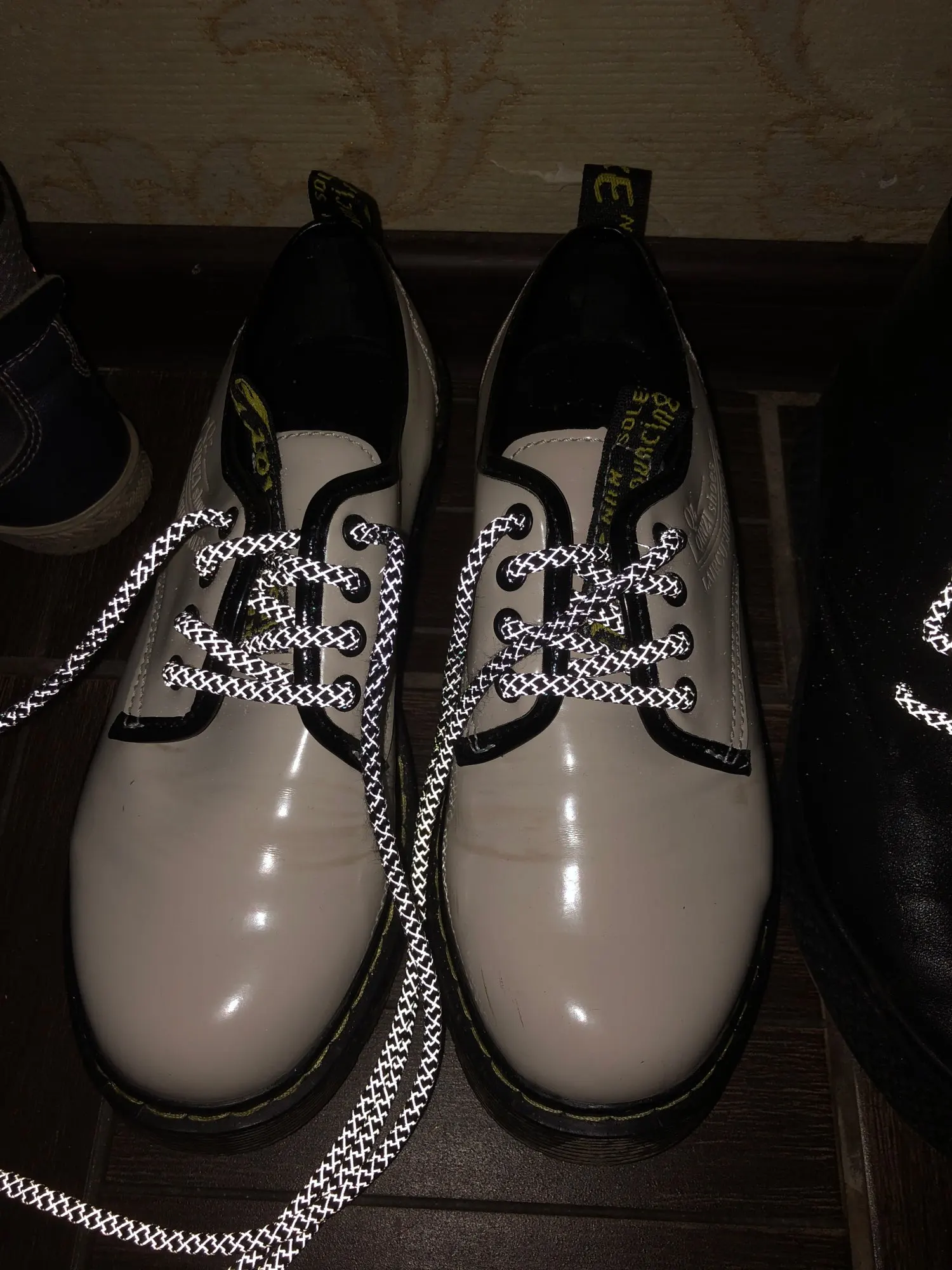 Шнурки качественные, пришли в хорошей упаковке. Сами по себе не светятся, только отражают свет. Закала сразу чёрные и белые, после того как пришли заказала ещё и жёлтые