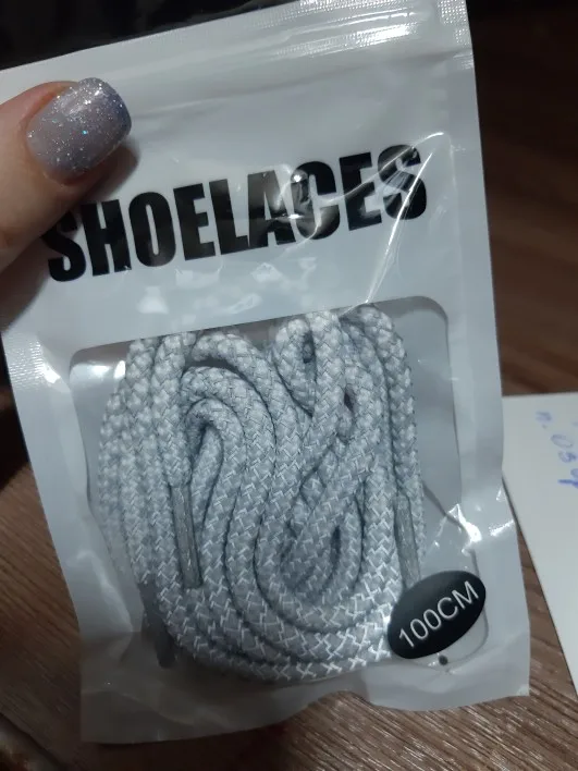 Товар пришёл быстро. Продавец отвечал на все вопросы. Шнурки светоотражают, товаром довольна.