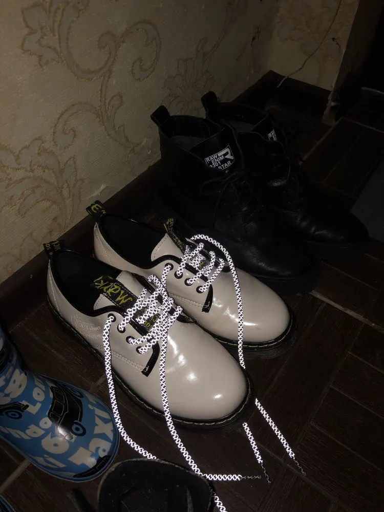 замечательный товар, им доволен! светятся не каждый раз, требуют их наблюдения под определенным углом. базовые шнурки кроссовок adidas nmd r1 stlt pk насчитывали 110-120см, эти же покупал метровые. данной длинны хватило для того, чтобы зашнуровать обувь следующим образом: к покупке рекомендую. ни раз их стирал, – белый цвет не тускнеет. рефлектикные вставки отрабатывают как и прежде. спасибо за внимание! рад помочь вам с выбором!