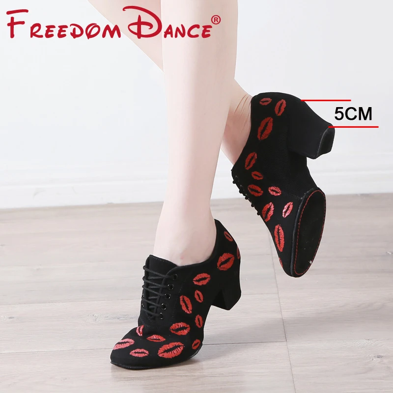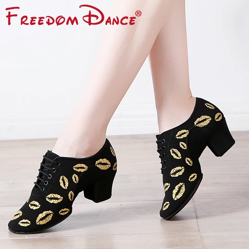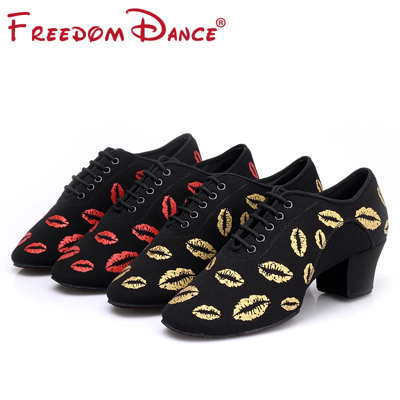 Женские туфли для бальных танцев, Обучающие туфли из ткани Оксфорд, каблук средней высоты 5 см, мягкие дышащие туфли для танго, латинских танцев