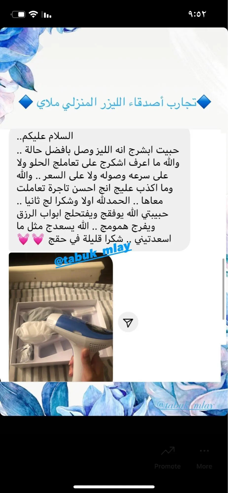 Лазерный представитель для запросов и общения Instagram @ tabuk_mplay (Доставка во все регионы Королевства и стран Залива) Лазер помогает удалить волосы с первого месяца использования Удобный и простой в использовании с полной конфиденциальностью Один объектив, в котором вам достаточно от года и текста до двух лет Сестры могут поделиться одним устройством с объективом, предназначенным для каждого блока