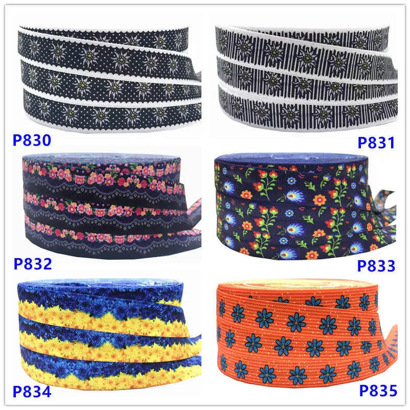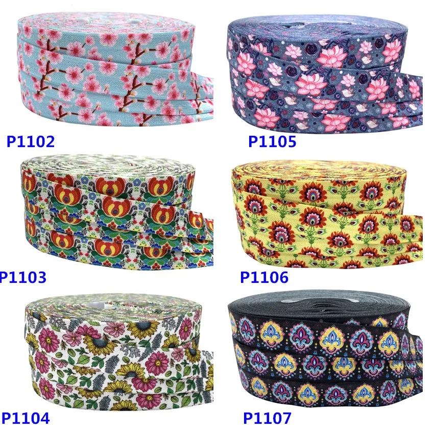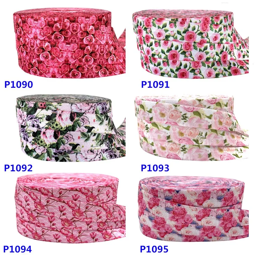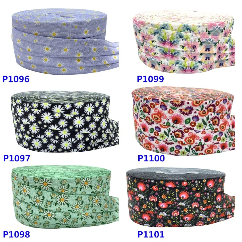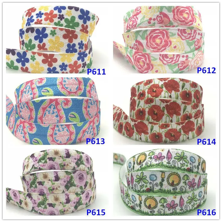 50 ярдов, 16 мм, цветочный принт, складывается поверх эластичной ленты для волос, эластичная лента для волос, аксессуары для волос, эластичная тесьма, браслет