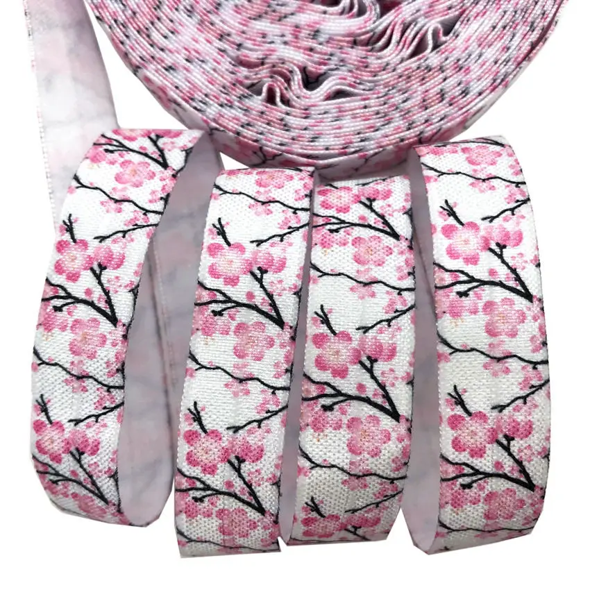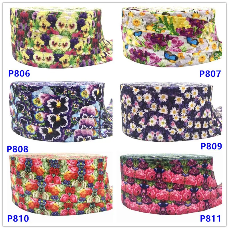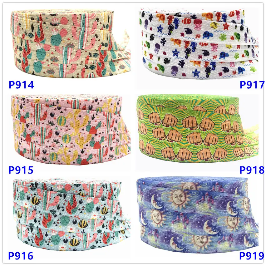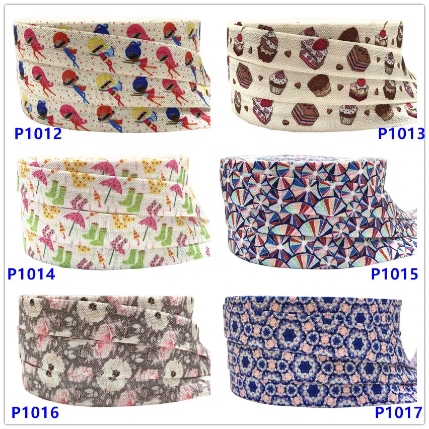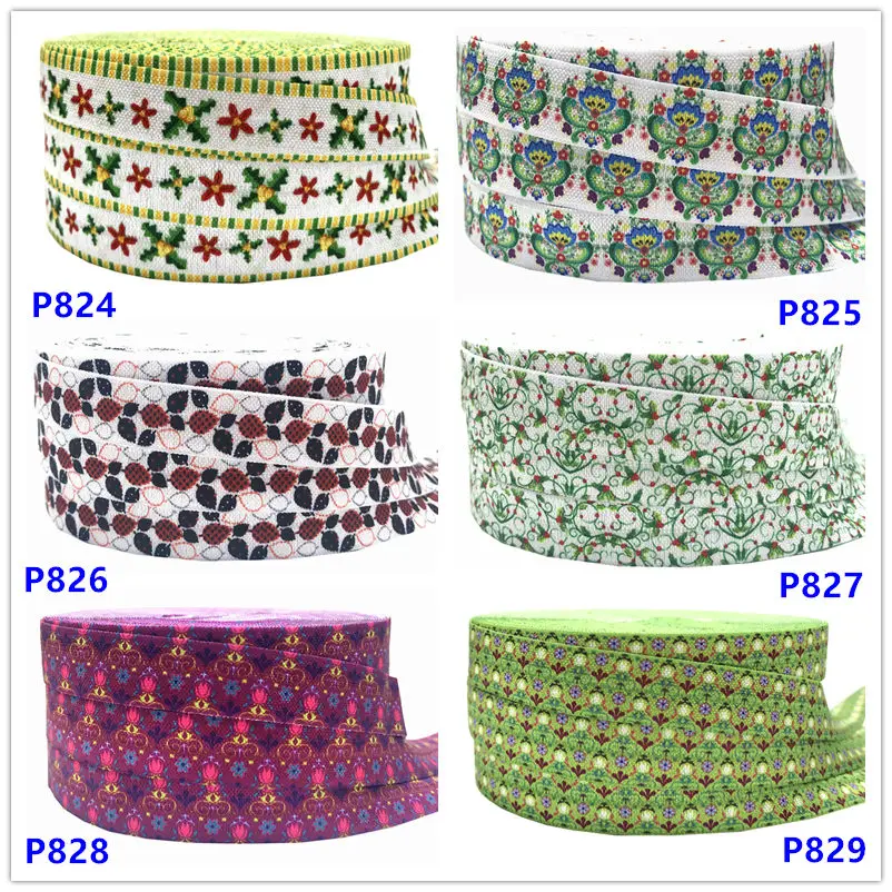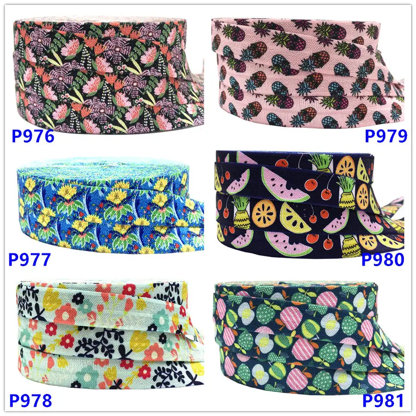 50 ярдов, 16 мм, цветочный принт, складывается поверх эластичной ленты для волос, эластичная лента для волос, аксессуары для волос, эластичная тесьма, браслет