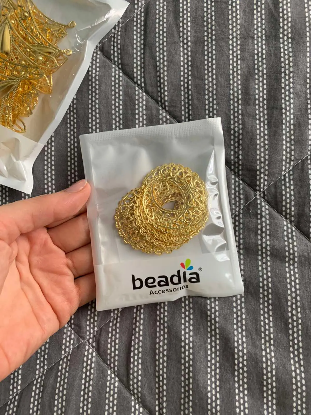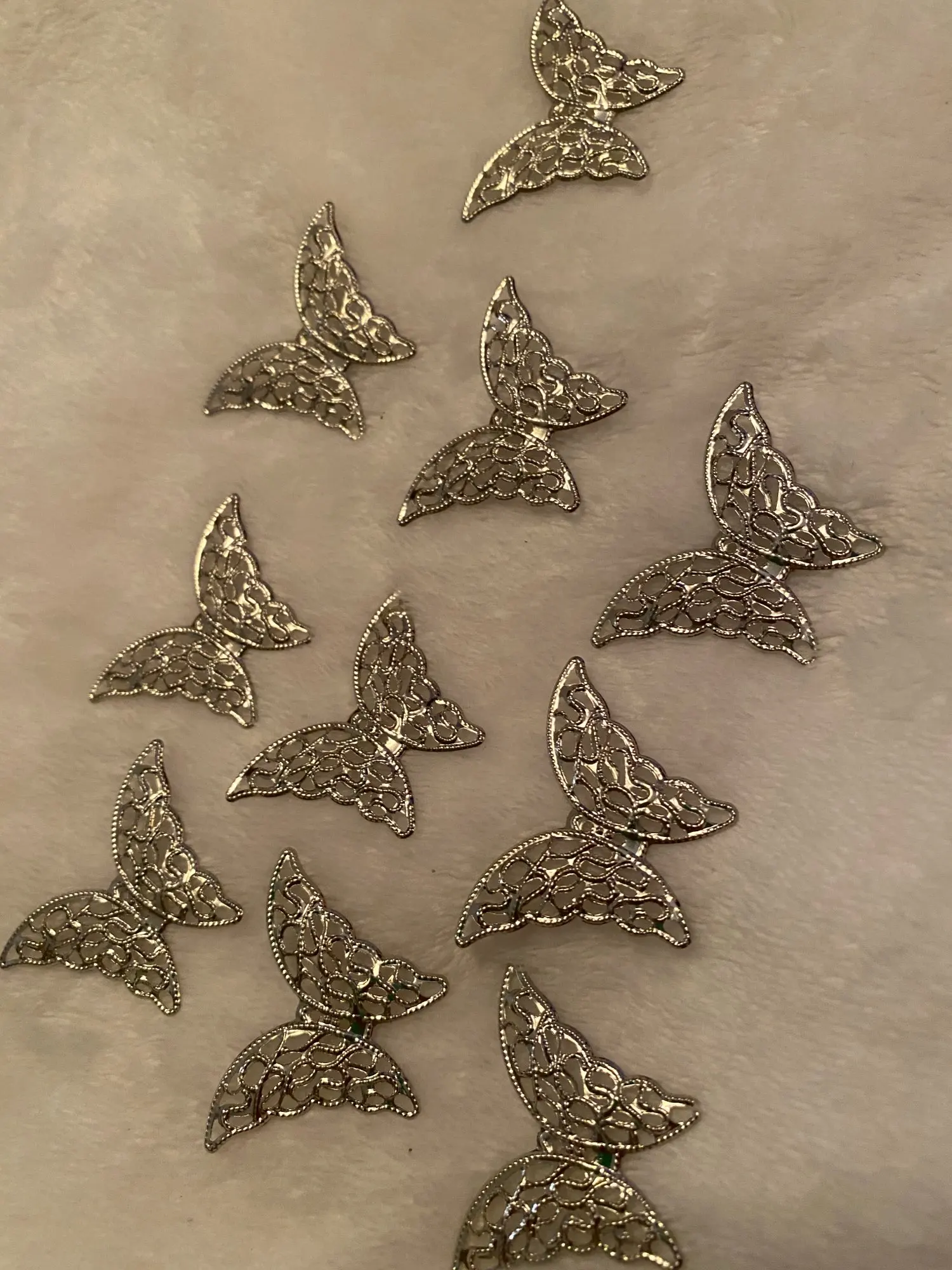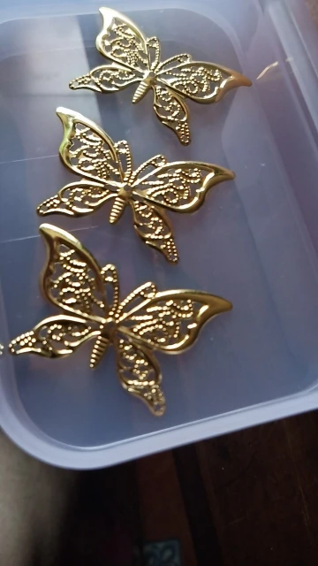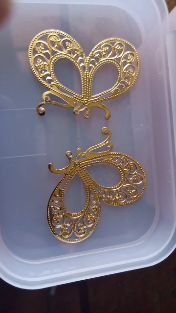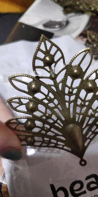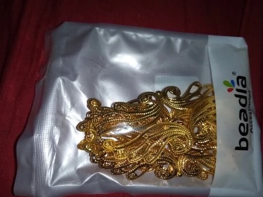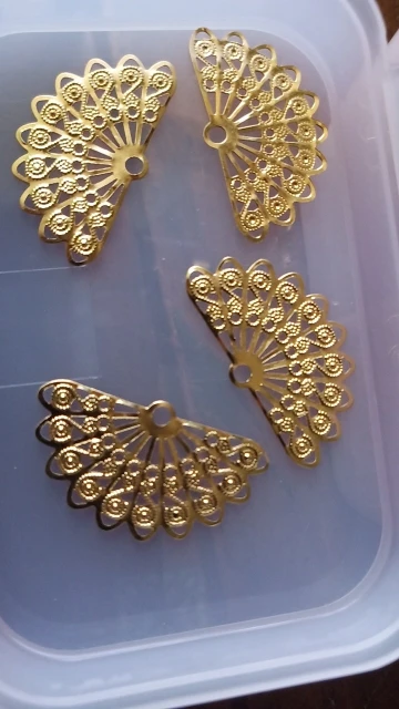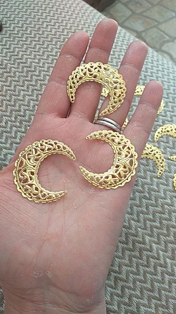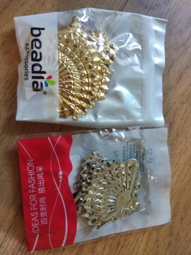 Посылка добралась где-то за 25 дней. Колличество соответствует заявленному. Размер соответствует заявленному. Сделано из тонкого метала - легко гнется. Детали не очень аккуратно вырезаны (за это и поставила 4 звёзды). Серьги делать из них, я бы не рекомендовала, т.к. недочёты будут бросаться в глаза, а для украшения карнавального костюма подойдут.