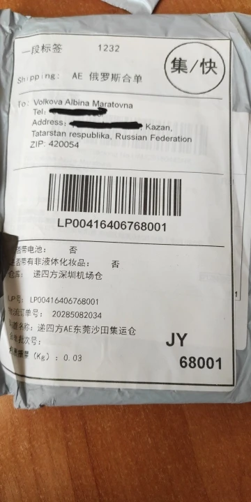 Страна: RU Color: 16 Material: Redmi Note 9 Доставка: Cainiao Super Economy 26.01.2021