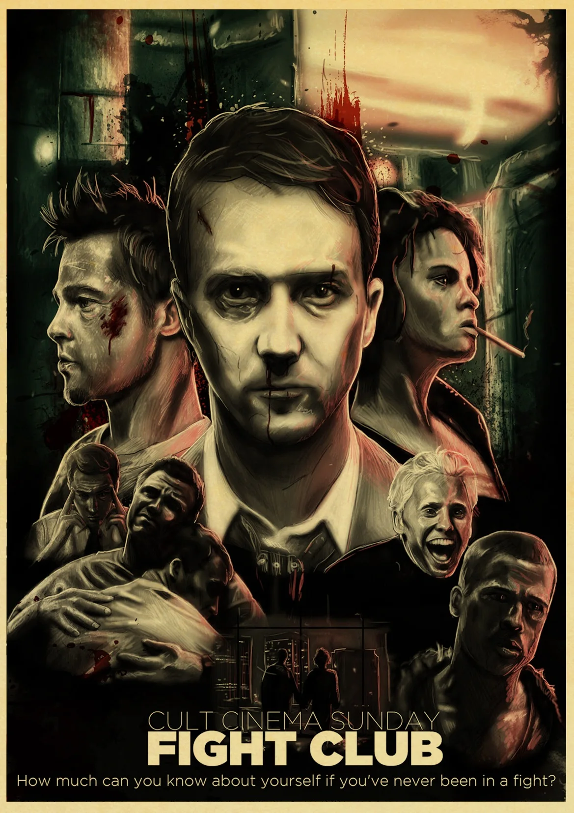 Винтажный бумажный плакат Брэд Питт из фильма Бойцовский клуб, настенная живопись, украшение для дома 42x30 см 30x21 см