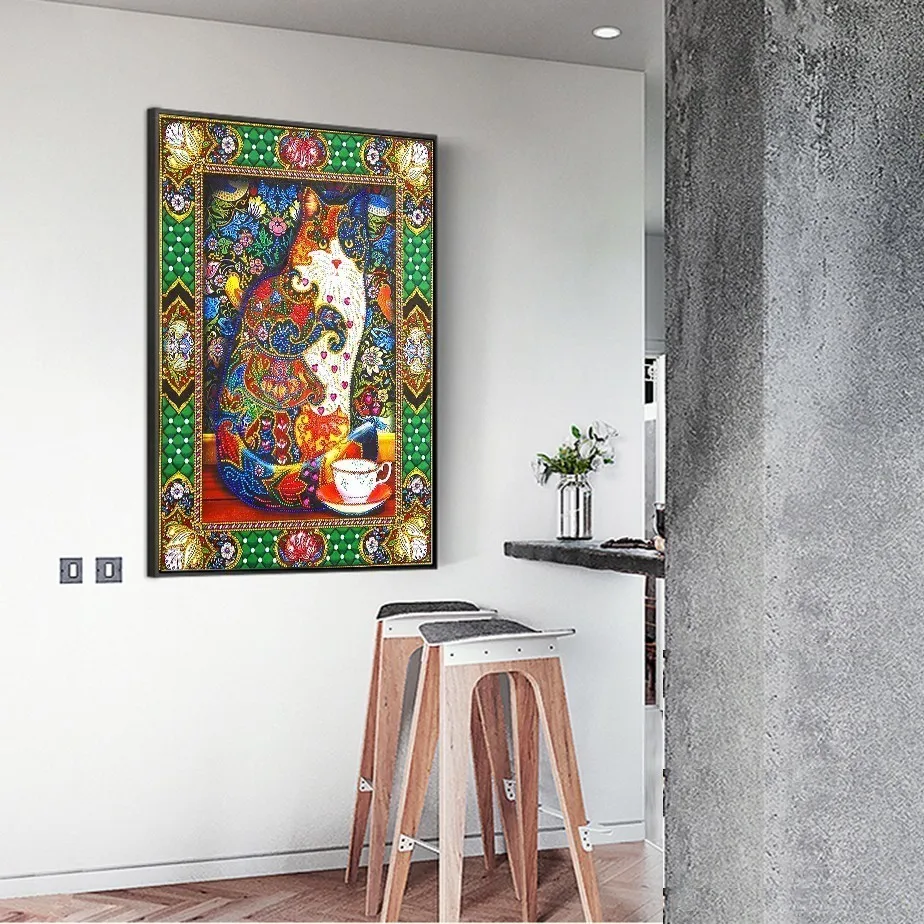 Алмазная живопись Huacan особой формы, картина с изображением животных, 5D сделай сам, частичная круглая Алмазная вышивка с котом 40 х50 см
