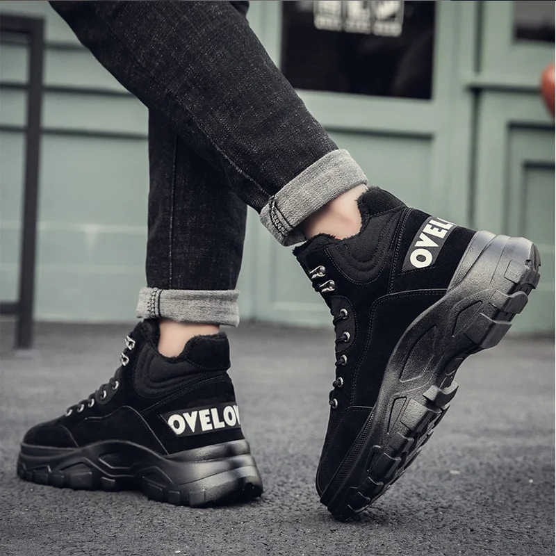 Мужские кроссовки SUROM, Классические повседневные плюшевые кроссовки из искусственной кожи на плоской подошве, на шнурках, на зиму